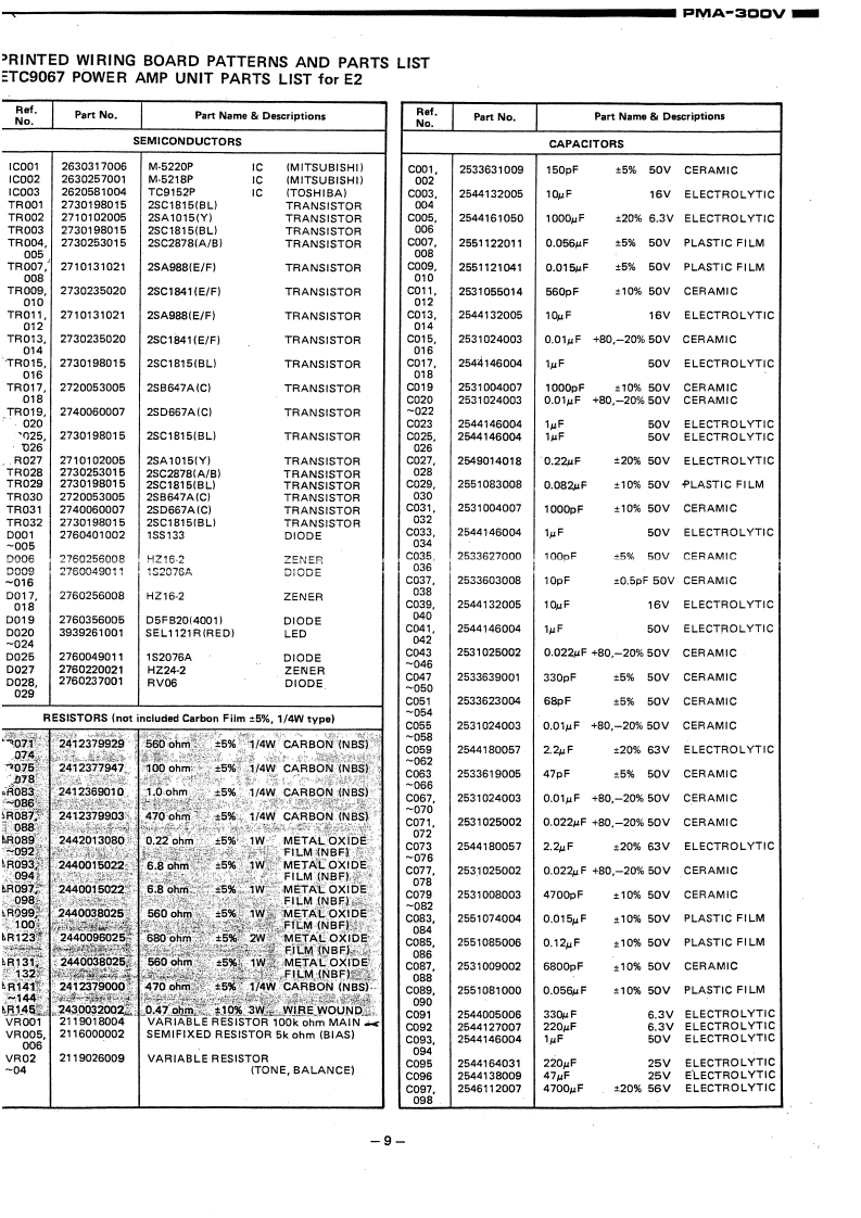 DENONHi-Fi Integrated AmplifierSERVICE MANUALMODEL PMA-3OOVSOLID-STATEINTEGRATED AMPLIFIERTABLE OF CONTENTSSPECIFICATIONS2NAME AND FUNCTION OF PARTS.....................................................3CONNECTIONS...METHOD OF ADJUSTMENTS .........................................................6REMOVAL EACH SECTION ..........................................................6BL0 CK DIAGRAM…SEMICONDUCTORS,·7PRINTED WIRING BOARD PATTERNS AND PARTS LISTETC9067 POWER AMP UNIT .......................................................9NIRING DIAGRAM…SCHEMATIC DIAGRAM............6EXPLODED VIEW OF CHASSIS AND CABINET PARTS LIST.............................14NIPPON COLUMBIA CO.,LTD