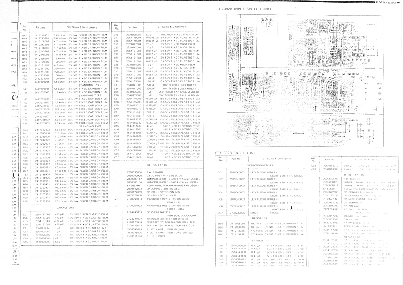 DENO-00221DENON2.11033c02Hi-Fi Component AmplifieSERVICE MANUALMODEL PMA-550SPECIFICATIONSBLOCK DIAGRAMMETHOD OF ADJUSTMENTS1NOTES ON SERVICING REMOTE SWITCH..EXPLODED VIEW OF CHASSIS AND CABINETPARTS LIST FOR EXPLODED VIEW .223PRINTED CIRCUIT BOARD PATTERNS AND PARTS LIST4EQ.CONTROL UNIT AUE-010..,...INPUT SWITCH,LED UNIT ETC-392B5,6POWER AMP UNIT PUX-0287POWER SUPPLY UNIT ETC-393B...810WIRING DIAGRAM....11,12CONNECTION DIAGRAM.,··.,···13.1415,16NIPPON COLUMBIA CO..LTD22M