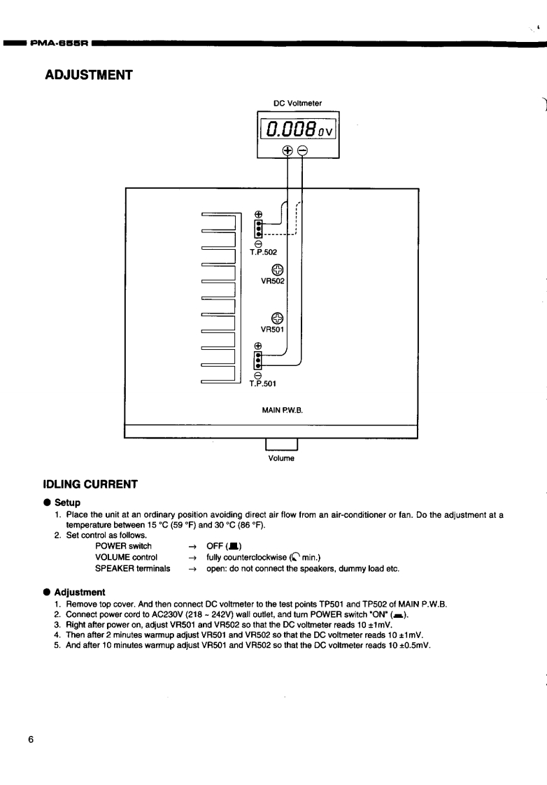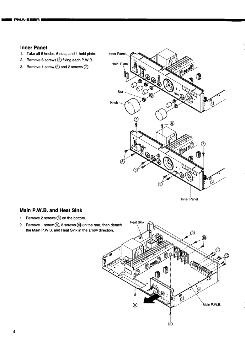 DENONHi-Fi Integrated Stereo AmplifierSERVICE MANUALMODEL PMA-655RINTEGRATED STEREO AMPLIFIER-TABLE OF CONTENTS-SAFETY PRECAUTIONS.2SPECIFICATIONS…2BLOCK AND LEVEL DIAGRAM.5ADJUSTMENT..,6SEMICONDUCTORS.........710PRINTED WIRING BOARD ........1113NOTE FOR PARTS LIST..14PARTS LIST OF P.W.BOARD..14-17PARTS LIST OF EXPLODED VIEW ....EXPLODED VIEW........…1819WIRING DIAGRAM.........+.20SCHEMATIC DIAGRAM..,21PACKING VIEW,23PARTS LIST OF PACKING ACCESSORIES.....23Some illustration using in this service manual is slightly different from the actual set.NIPPON COLUMBIA CO..LTD.