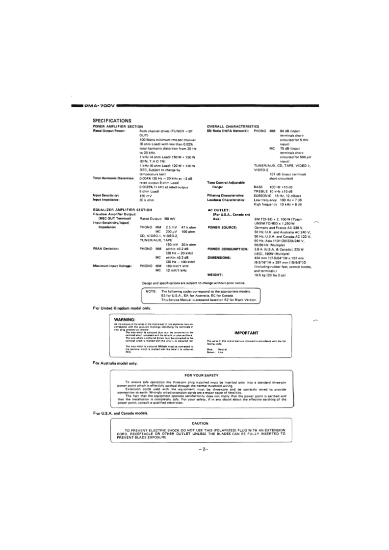 DENONHi-Fi Integrated AmplifierSERVICE MANUALMODEL PMA-7O▣VSOLID STATEINTEGRATED AMPLIFIER5TABLE OF CONTENTS%s398 TIONOAR月SPECIFICATIONSREMOVAL OF EACH 5ECTION.........................................................CONNECTIONS.BLOCK DIAGRAMJUSTMENTS......0卡5年有卡有无”15卡4卡15111月卡5卡9卡”15行9卡9卡49卡4卡中中中年中年÷年中年40,卡4+4▣4年;9年年,号年SEMICONDUCTORS...8PRINTED WIRING BOARD PATTERNS AND PARTS LIST88888a0w710WIRING DIAGRAM...SCHEMATIC DIAGRAM4竹修NIPPON COLUMBIA CO.,LTD.20