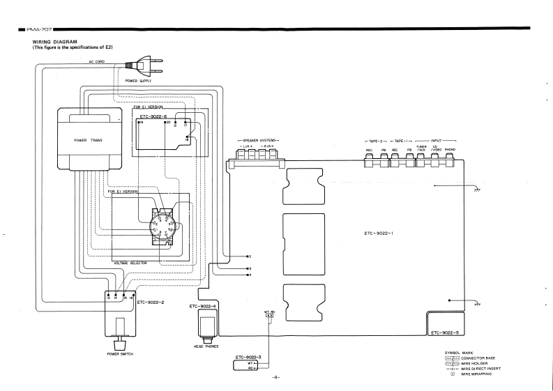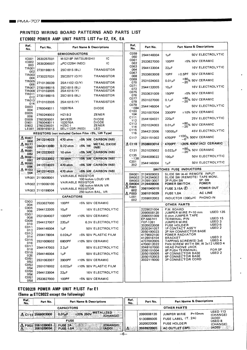 DENONHi-Fi Integrated AmplifierSERVICE MANUALODEL PMA-7▣7SOLID-STATEINTEGRATED AMPLIFIERTABLE OF CONTENTSSPECIFICATIONSBLOCK DIAGRAM .............................................CONTROLS AND DESCRIPTIONS...,,,,,,.,,,,·,.,,,,,·:··,,·CONNECTIONS..METHOD OF ADJUSTMENTS,.······223345REMOVAL EACH SECTION .....PRINTED WIRING BOARD PATTERNS AND PARTS LISTETC9002 POWER AMP..UNlT.,,..·,.,,,,,·····6WIRING DIAGRAM8SCHEMATIC DIAGRAM.,.,,,,,,··········9SEMICONDUCTORS.,,·.9EXPLODED VIEW OF CHASSIS AND CABINET&PARTS LIST..·...·,.,.·.···,10NIPPON COLUMBIA CO.,LTD.