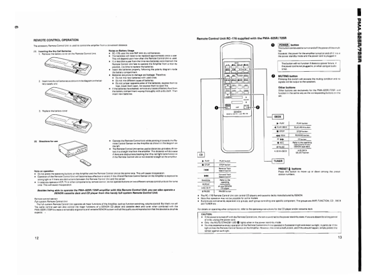 DENONHi-Fi Integrated Stereo AmplifierSERVICE MANUALMODEL PMA-925R/725RINTEGRATED STEREO AMPLIFIER88ooooPMA-925R66ddd品δ罚PMA-725RCONTENTSOPERATING INSTRUCTIONS.,,,,…2-7REMOVAL OF EACH SECTION8.9FUNCTION OF NEW CIRCUIT10,11METHOD OF ADJUSTMENTS ...................................................................12BLOCK AND LEVEL DIAGRAM...............................................................13SEMICONDUCTORS ...14,15PRINTED WIRING BOARD16-19NOTEFORPARTSLIST.........................................................................0PARTS LIST OF P.W.B.ASSY20-25PMA925R.............................................................................20-23PMA-725R......................23-25EXPLODED VIEW OF CHASSIS AND CABINET,PARTS LIST OF EXPLODED VIEW.....................26-29PMA-925R…4.2627PMA-725R.....................................2829WIRINGDIAGRAM..............................................................................30SCHEMATIC DIAGRAM31-34PMA-925R……31.32PMA-725R.33,34NIPPON COLUMBIA CO.,LTD