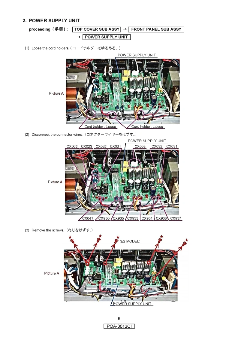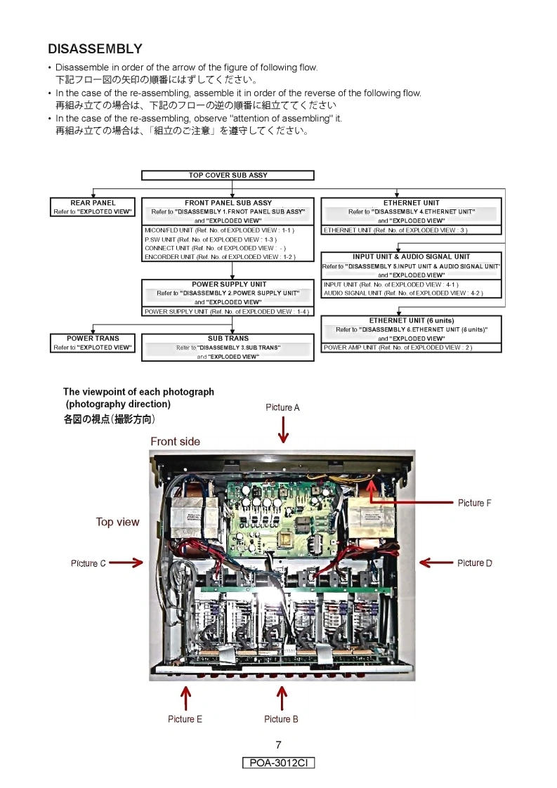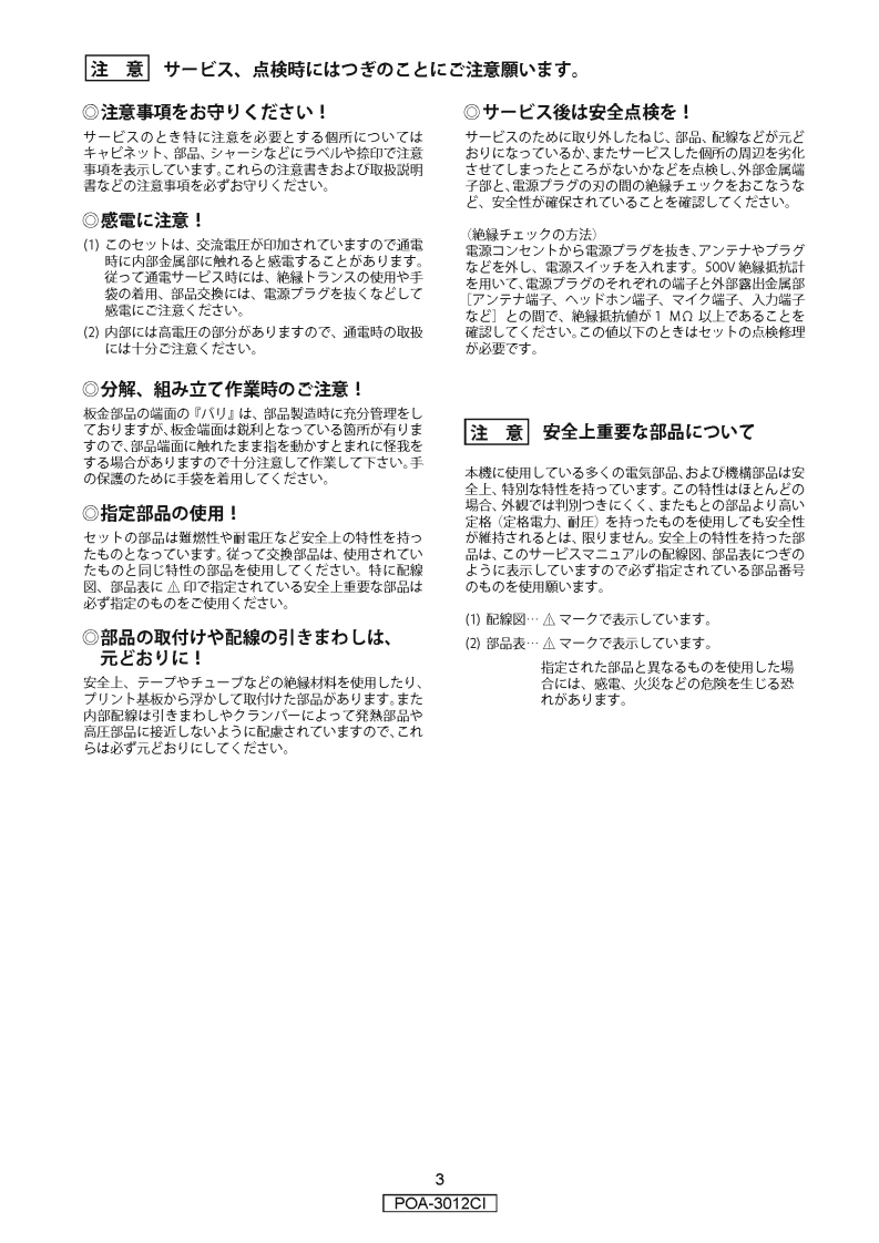 DENONVer.1SERVICE MANUALMODELJPE3E2EKE2AE1CE1KEUTPOA-3012C1√STEREO POWER AMPLIFIER注意廿一又在书乙存)前忙、乙①廿一ピ又又二ュ了儿左必寸方読〈挖古U八。本機志、火災、感電、付州存亿对寸石安全性在確保寸石左协亿、志未芒丰存配虑在书乙存一乙书、ま法的(法「電氖用品安全法」忆屯匕老、所定)許可苍得乙製造这九乙书)丰$。徙乙廿一上又在书乙存際味、乙九5D安全性雒持特这九石太、乙仞圹一上又マ二ュ了儿記裁这九乙石注意事項左必式守)《龙志八。For purposes of im provement,specifications and·本機)仕樣性能改良)左协、予告本《变更寸石乙匕design are subject to change without notice.奶态)去寸。·補修用性能部品の保有期間体、製造打切後8年飞亨。Please use this service manual with referring to the·修理)際太、必寸取极脱明害左参照の上、作業卷行一operating instructions without fail.乙<龙达。.Some illustrations using in this service manual are·本文中忙使用LC亻与又卜体、脱明②都合上現物slightly different from the actual set.上多少異存石場合莎)未寸。DENONDenon Brand Company.D&M Holdings Inc.X0364V.01DE/CD☑0803