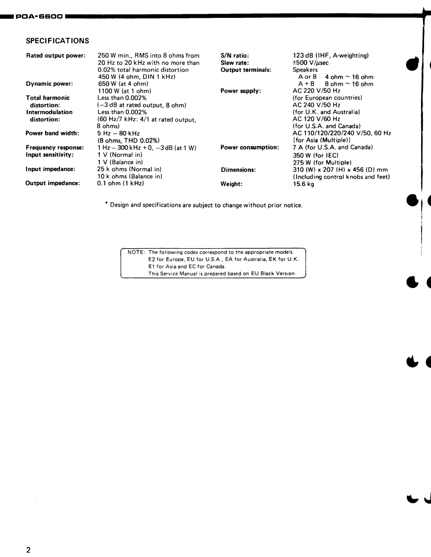 DENONHi-Fi Monaural Power AmplifierSERVICEMANUALMODEL POA-6600SOLID STATEMONAURAL POWER AMPLIFIERCONTENTSSPECIFICATIONSNAME OF EACH PART.............,.,...,,,,,,,,·,··,··,···············3CONNECTIONS.......。,。。。。。。,。,。1,,,+1t444.44104。,,;,:,t,+,。。45REMOVAL OF EACH SECTION.,··6METHOD OF ADJUSTMENTS,,···…··TROUBLESHO0TING.,,,·BL0 CK DIAGRAM,·…9SEMICONDUCTORS.,,,···9PRINTED WIRING BOARDKU9117 POWER UNIT.,.,,····10KU9118P.S.UNIT,.,...11PRINTED WIRING BOARD PARTS LIST........................................12~15NIRING DIAGRAM.·16SCHEMATIC DIAGRAM17EXPLODED VIEW OF CHASSIS AND CABINET PARTS LIST18ADDENDUM LIST,.,,,,,,···19NIPPON COLUMBIA CO.,LTD.