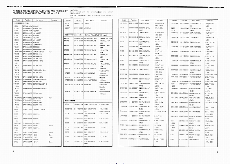 DENONH-Fi Stereo PreampifierSERVICE MANUALFor U.S.A.and Asia ModelsCANADAMODEL PRA-M2▣OCAUTIONRISK OF ELECTRIC SHOCKDO NOT OPENSTEREO PREAMPLIFIERCAUTION:TO REOUCE THE RISK OF ELECTRICSHOCK.DO NOT REMOVE COVER (OR BACKI.NOUSER SERVICEABLE PARTS INSIDE.REFER SERVIC-ING TO QUALIFIED SERVICE PERSONNEL.The ightsing lianh with arreahead famiol withn an eaulatera trangle6iwn过oath0t0t内t0tien线nnu一n0u由oao行聊40fty吃h6线1D门0nThe earigm10n0 nt withn an3 ulateral vin号in1t同ed0etthe ue of the pres罐a mport30解ngnd中Men8w8ing ifolructian in tha terature accompanying the appianoe.NARNING:TO PREVENT FIRE OR SHOCK HAZARD,DO NOT EXPOSE THIS APPLIANCE TO RAIN OR MOISTURECONTENTSSPECIFICATIONS.无有111111444卡卡卡卡卡卡卡”卡中”====中年-5年5年卡年下下卡卡NAMES AND FUNCTIONS OF PARTS.......................-.-.-.-.............CONNECTONSBLOCK DIAGRAM4METHOD OF ADJUSTMENTS55REMOVALOF EACH SEcnON,..............................--.--.-.-.-........TR0U8L55H00TNG.-.,.,-6SEMICONDUCTORS.PRINTE WIRING BDARD PATTERNS AND PARTS LiSTPRINTE0 NIRING B04 D PARTS LIST,,,,,:810PRINTED WIRING BOARO PATTERNETC9072E PREAMP LINIT10AIRING DIAGRAM。NIPPON COLUMBLA CO.LTD1a-14.4-CHCME AKASAKAEDDe0 VIEW OF CHAS8sAN口CABINET&PA网T5U5T,,:,:,:::,..·,-:-14ADDENDUM LISTMINATOKU.TOKYO 900-11.JAPANT6L钟48111T几K:APANCLA5MCABLE:NIPPONDOLUMOIA TOKYONIPPON COLUMBIA CO.,LTD.Prinkod in Jpan0g可g1g0