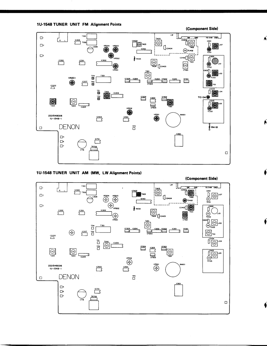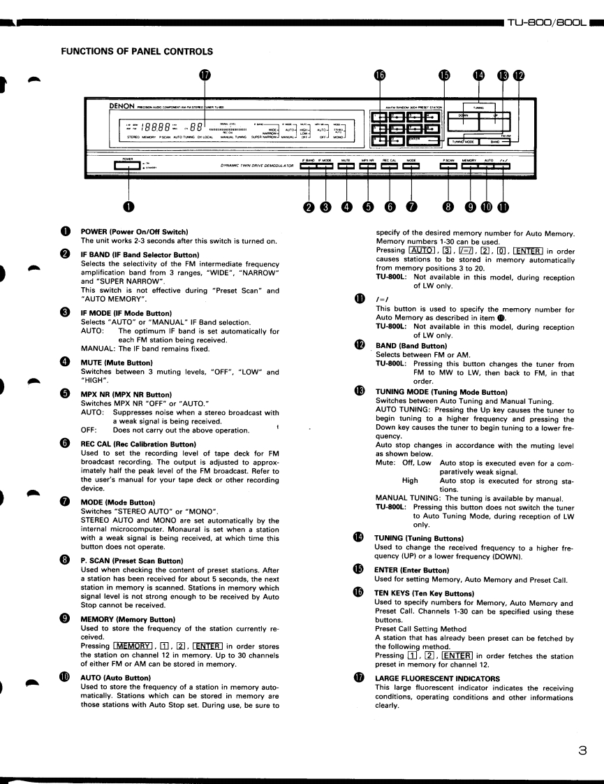DENON708/HiFi Stereo AM-FM TunerSERVICE MANUALMODEL TU-8O▣/8OOLTU-8002-BAND(AM-FM)STEREO TUNERTU-800L3-BAND(LW-MW-FM)STEREO TUNERCONTENTSSPECIFICATIONS.,:,················FUNCTIONS OF PANEL CONTROLS3C0 NNECTIONS.,·,·,············4~5BLOCK DIAGRAM·.··.6REMOVAL OF EACH SECTION·.,····METHOD OF ADJUSTMENTS..···.··8~9SEMICONDUCTORS.10≈14SCHEMATIC DIAGRAM (for 2 BAND)15SCHEMATIC DIAGRAM (for 3 BAND)16WIRING DIAGRAM....·.·...·······,···17PRINTED WIRING BOARD1U-1548 TUNER UNIT ...18.19SCHEMATIC DIAGRAM(DISPLAY UNIT).·.··.·.20PRINTED WIRING BOARDS AND PARTS LIST1U-1549 DISPLAY UNIT21EXPLODED VIEW OF CHASSIS AND CABINET&PARTS LIST.···.·.··,··,···.··22~23PRINTED WIRING BOARD PARTS LIST,.···.·..·.·,.··,·,··,,·,,······2426CAUTIONS,........··.29NIPPON COLUMBIA CO.,LTD.