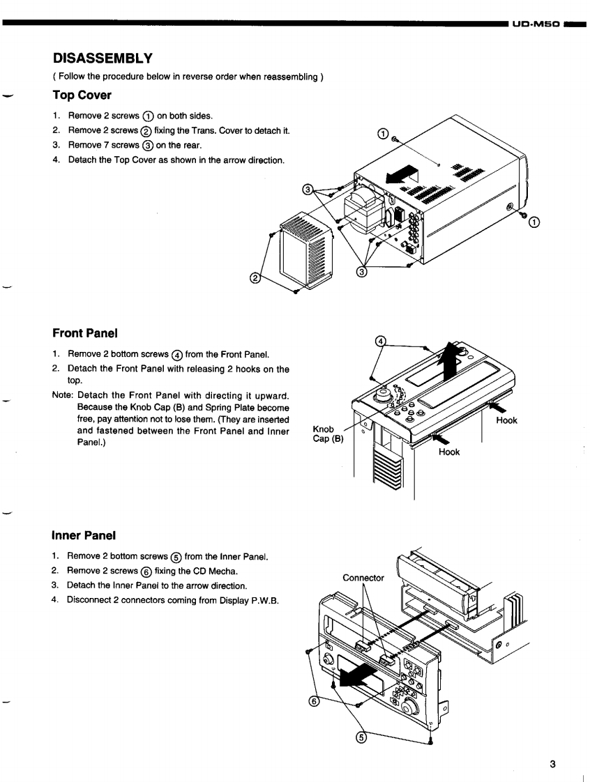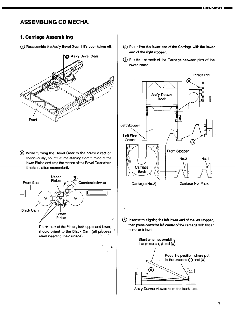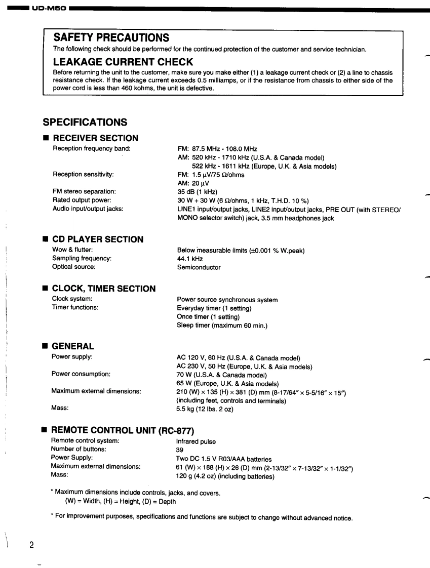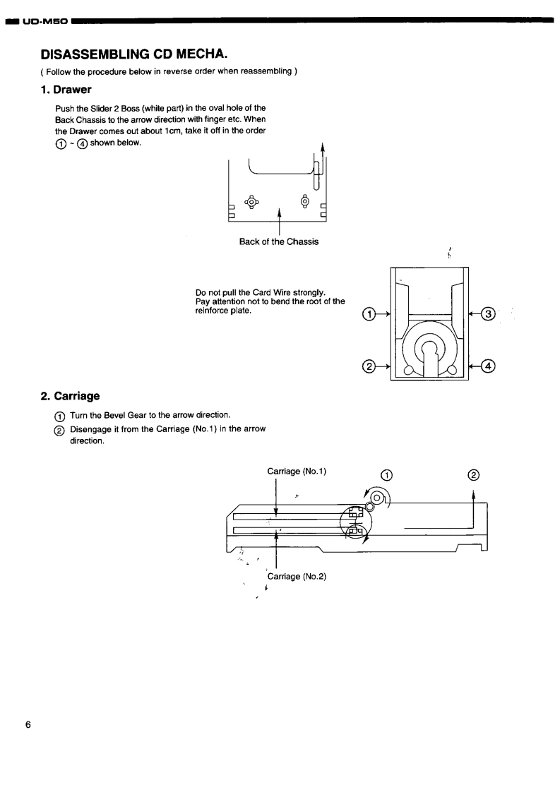 DENONFor U.S.A.,Canada,U.K.,Europe Asia modelsHi-Fi Personal Component SystemSERVICE MANUALMODEL UD-M50STEREO CD RECEIVERDENONReOw6665透066988IO一TABLE OF CONTENTS-SPECIFICATIONSDISASSEMBLY.......2DISASSEMBLING CD MECHA...3-5.6ASSEMBLING CD MECHA...BLOCK DIAGRAM.…7-10411ADJUSTMENT.12.14SEMICONDUCTORS..........PRINTED WIRING BOARD……15-19444444844444----.20-25NOTE FOR PARTS LIST4426PARTS LIST OF P.W.B.UNIT ASSY...........PARTS LIST OF EXPLODED VIEW.......26-33EXPLODED VIEW..34.35EXPLODED VIEW OF CD MECHANISM UNIT ......PARTS LIST OF CD MECHANISM UNIT.........3637WIRING DIAGRAM..38SCHEMATIC DIAGRAMS..3942PACKING VIEWPARTS LIST OF PACKING&ACCESSORIES444343Some illustrations using in this service manual are slightly different from the actual set.NIPPON COLUMBIA CO.LTD.X0103