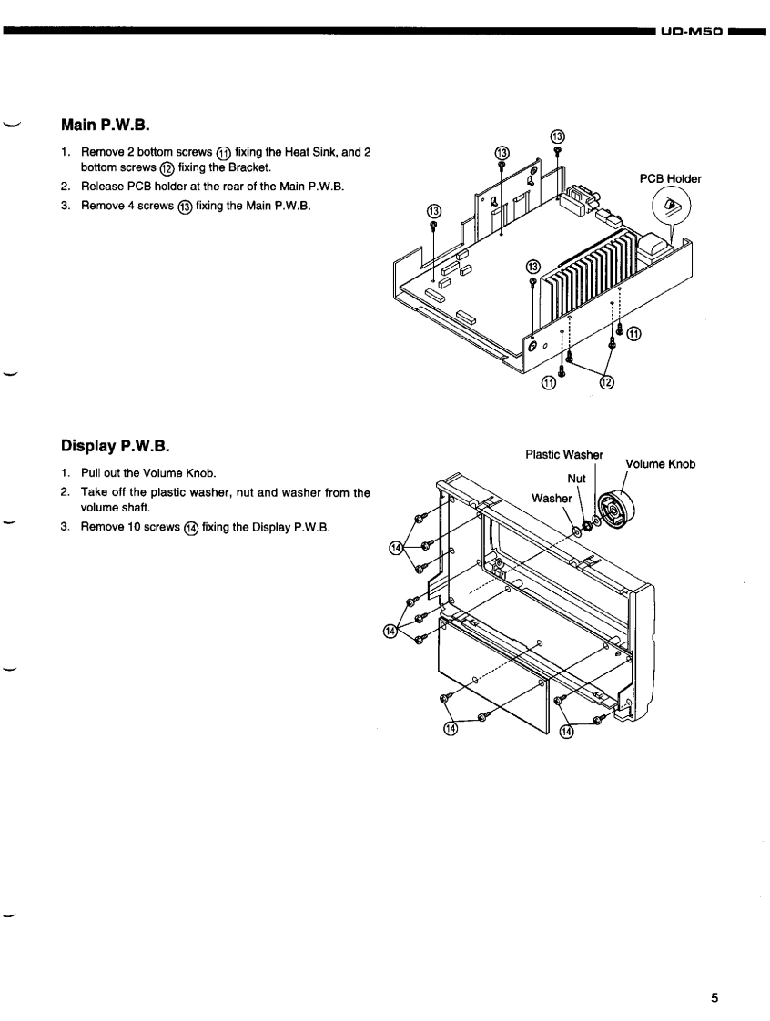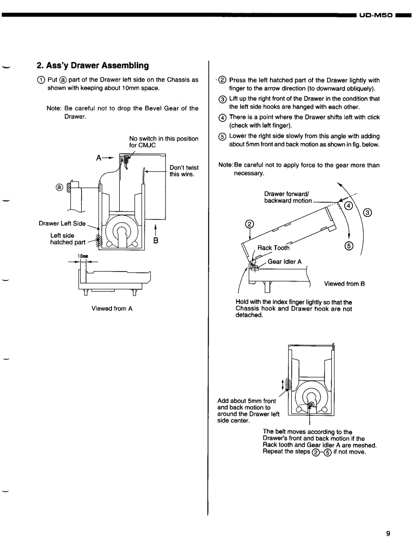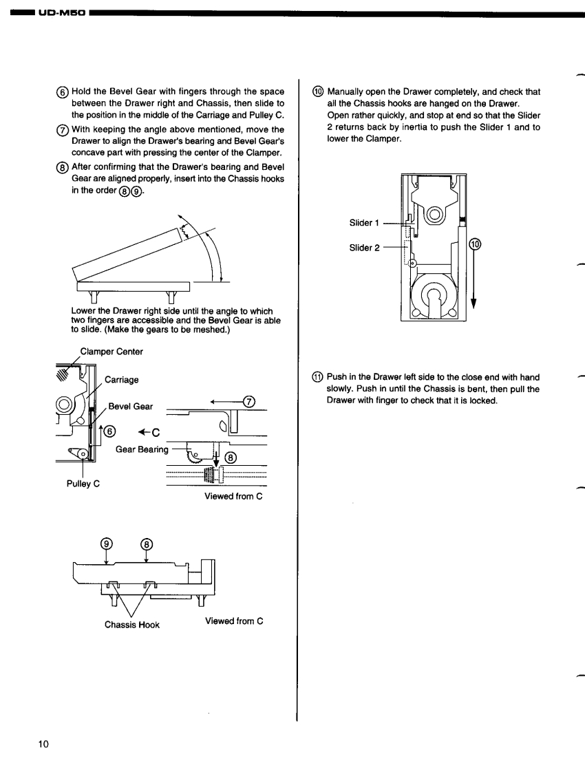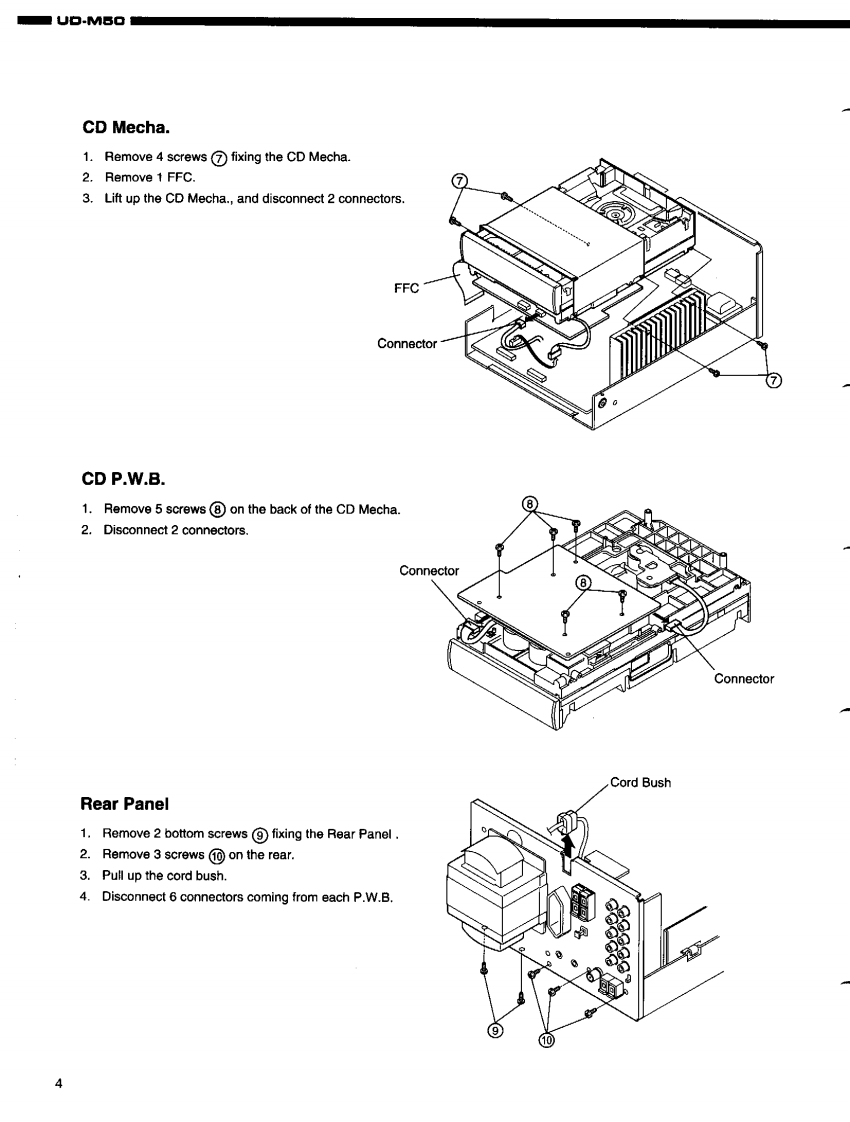 DENONFor U.S.A.,Canada,U.K.,Europe Asia modelsHi-Fi Personal Component SystemSERVICE MANUALMODEL UD-M50STEREO CD RECEIVERDENONReOw6665透066988IO一TABLE OF CONTENTS-SPECIFICATIONSDISASSEMBLY.......2DISASSEMBLING CD MECHA...3-5.6ASSEMBLING CD MECHA...BLOCK DIAGRAM.…7-10411ADJUSTMENT.12.14SEMICONDUCTORS..........PRINTED WIRING BOARD……15-19444444844444----.20-25NOTE FOR PARTS LIST4426PARTS LIST OF P.W.B.UNIT ASSY...........PARTS LIST OF EXPLODED VIEW.......26-33EXPLODED VIEW..34.35EXPLODED VIEW OF CD MECHANISM UNIT ......PARTS LIST OF CD MECHANISM UNIT.........3637WIRING DIAGRAM..38SCHEMATIC DIAGRAMS..3942PACKING VIEWPARTS LIST OF PACKING&ACCESSORIES444343Some illustrations using in this service manual are slightly different from the actual set.NIPPON COLUMBIA CO.LTD.X0103