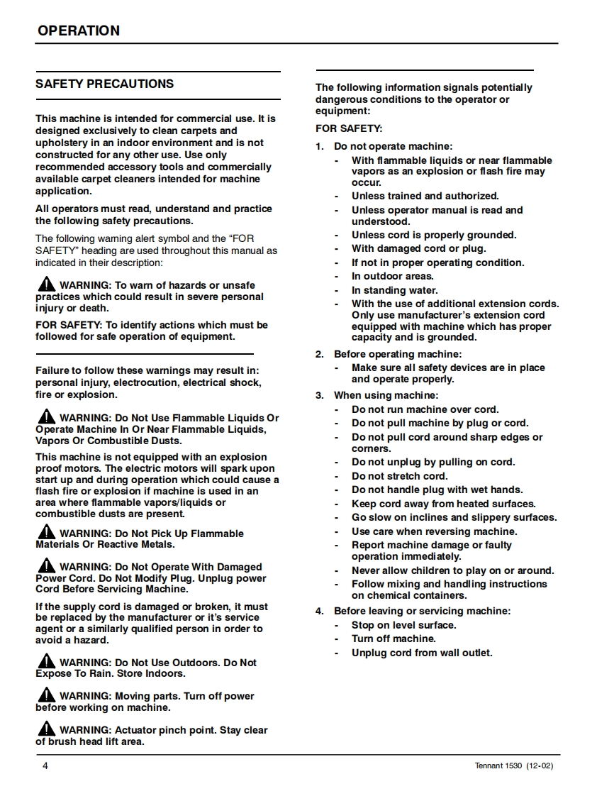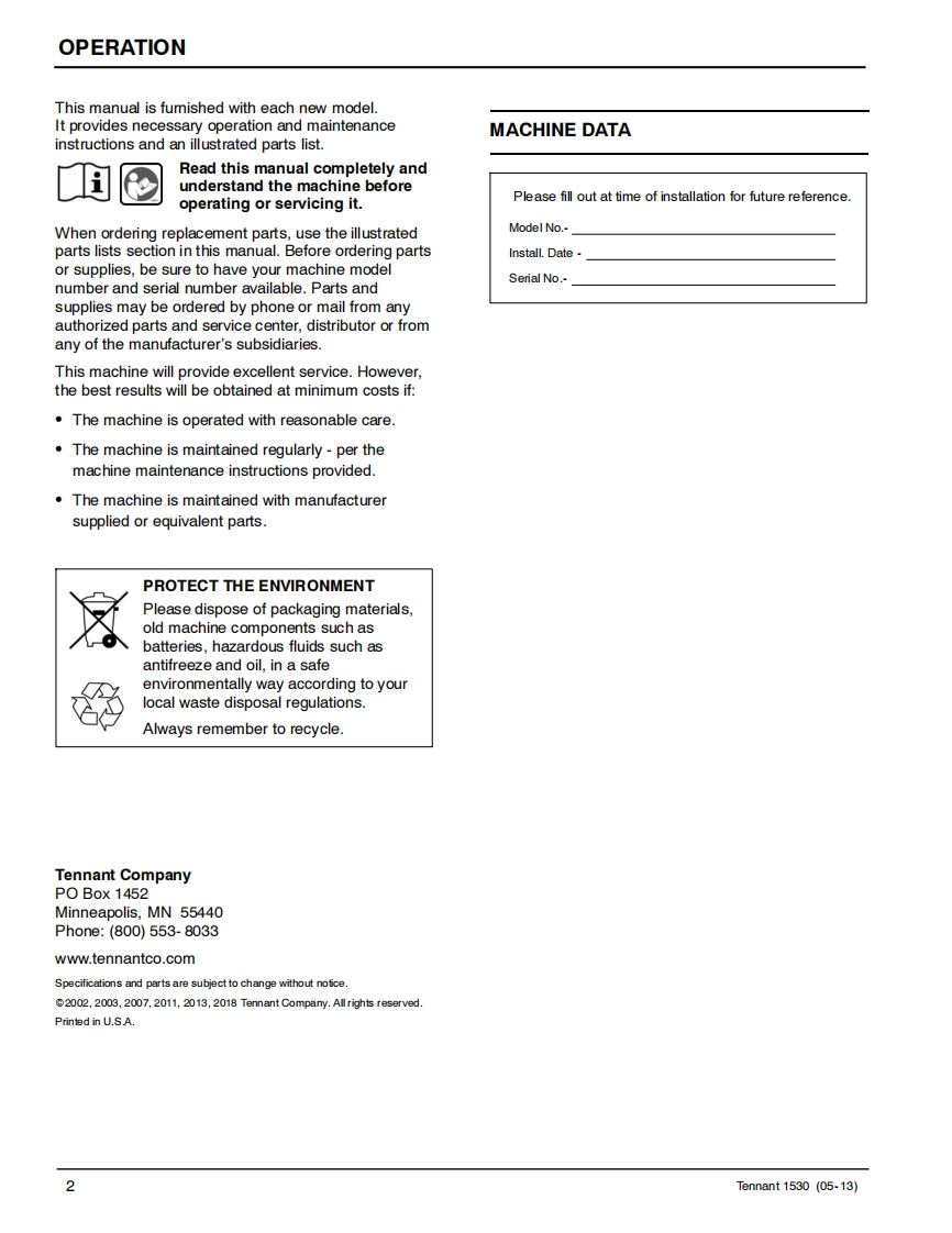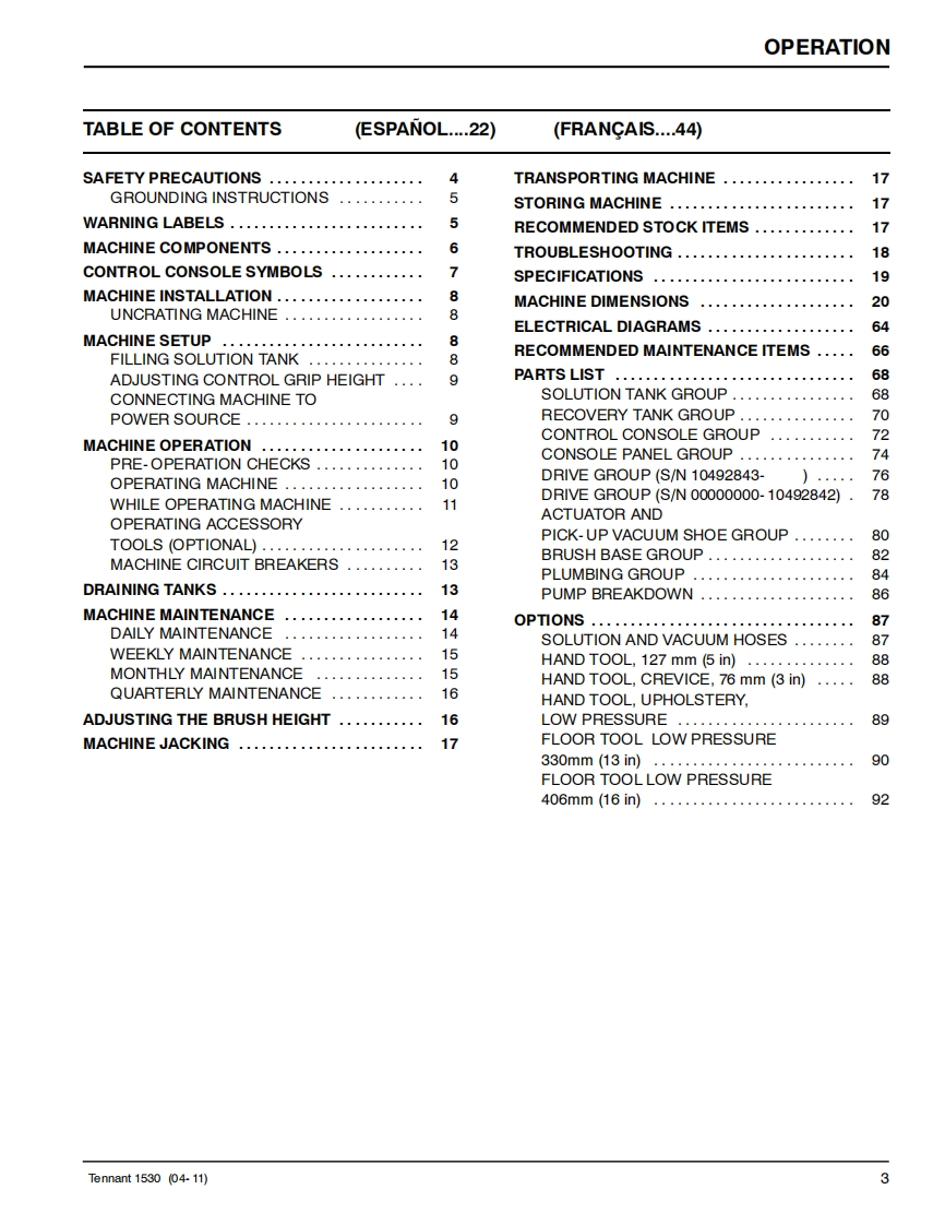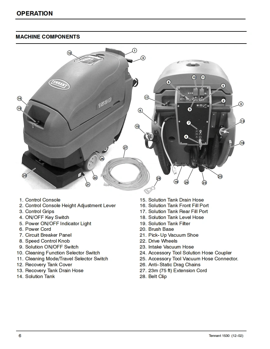 ENGUSH-ESPANOL-FRANCAISTENNANT1530Carpet ExtractorExtractor para Alfombras的Extracteur de moquetteOperator and Parts ManualTENNANTManual De Operador1580Y Lista De RepuestosOperateur Manuel etListe Des PiecesΛ的Model Part No.:614000▣▣To view,print or downloadthe latest manual.visit:613908www.tennantco.com/manualsRev.05(08-2018)www.tennantco.com