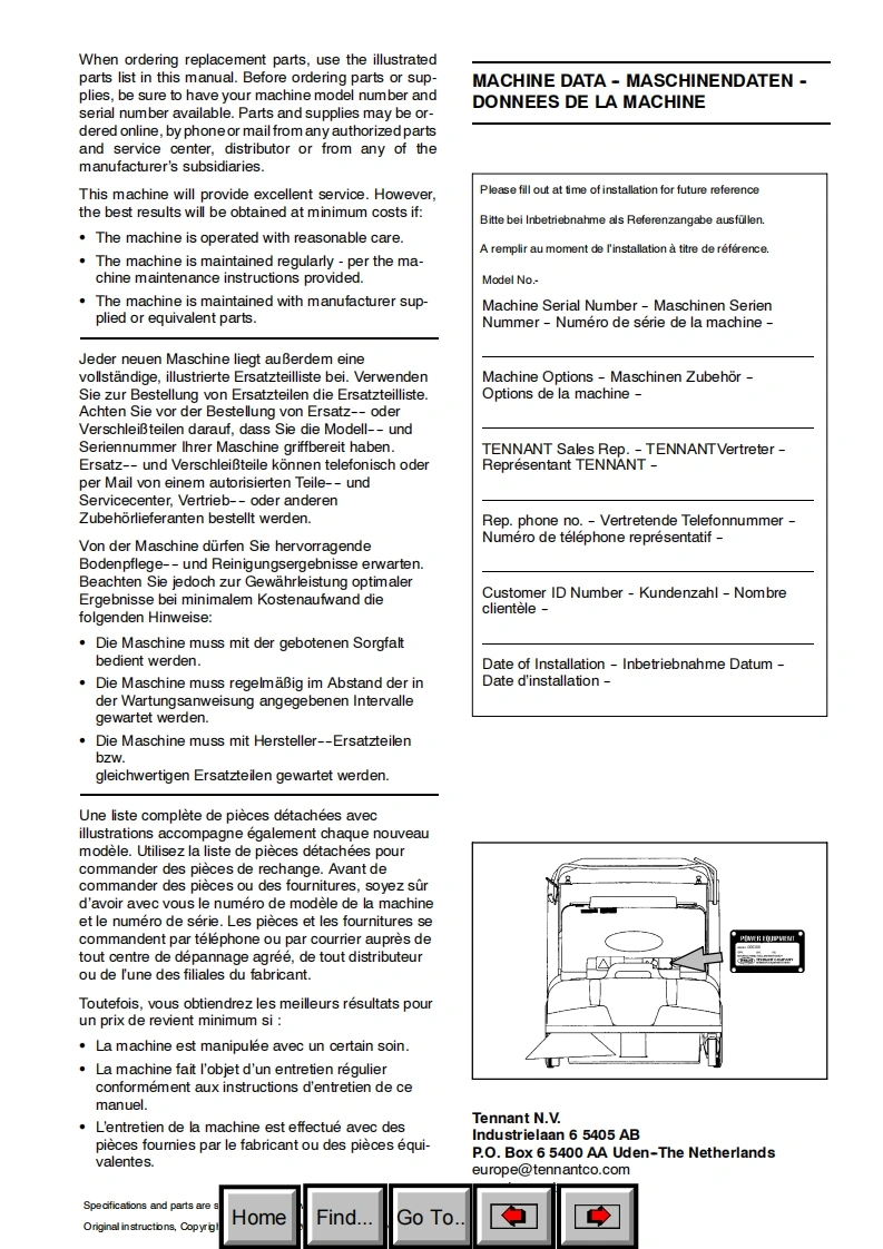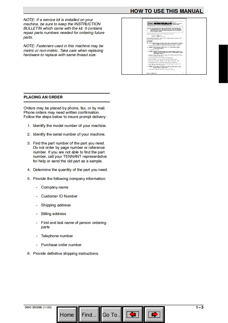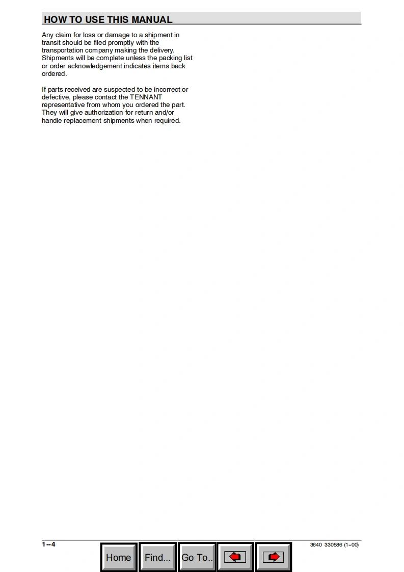 TENNANT-3640-LP-Gas-0208操作与维修手册含电器原理图找手册网18天前发布关注私信3.67MB134页020TENNANT-3640-LP-Gas-0208操作与维修手册含电器原理图此内容为付费资源,请付费后查看¥19¥21黄金会员免费钻石会员免费登录购买付费资源 第1页 / 共134页 第2页 / 共134页 第3页 / 共134页 第4页 / 共134页 第5页 / 共134页 第6页 / 共134页 第7页 / 共134页 第8页 / 共134页 第9页 / 共134页 第10页 / 共134页 试读已结束,还剩124页,您可下载完整版后进行离线阅读 THE ENDTENNANT(坦能) 文本预览 TENNANT3640(Gas/LPG)SweeperKehrmaschinebrosseuseParts ManualErsatzteil KatalogManuel des Pieces@0C€330586Rev.06(02-2008)www.tennantco.comWHomeFind...Go To 查看更多 收起部分 喜欢就支持一下吧收藏