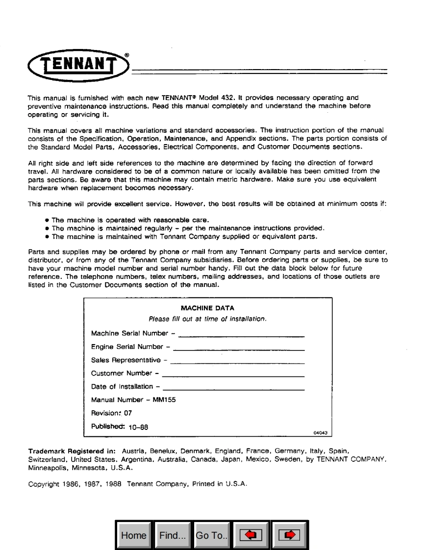 Tennant-432找手册网17天前发布关注私信1.57MB76页043Tennant-432此内容为付费资源,请付费后查看¥19¥21黄金会员免费钻石会员免费登录购买付费资源 第1页 / 共76页 第2页 / 共76页 第3页 / 共76页 第4页 / 共76页 第5页 / 共76页 第6页 / 共76页 第7页 / 共76页 第8页 / 共76页 第9页 / 共76页 第10页 / 共76页 试读已结束,还剩66页,您可下载完整版后进行离线阅读 THE ENDTENNANT(坦能) 文本预览 TENNANT432Parts ManualMM155HomeFind...Go To 查看更多 收起部分 喜欢就支持一下吧收藏
