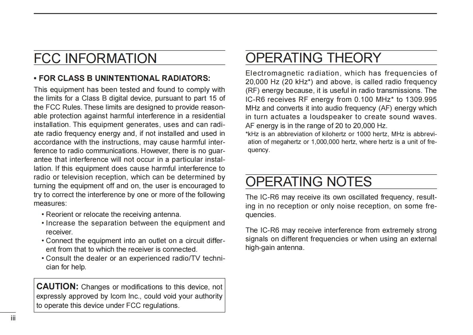 ICOMINSTRUCTION MANUALCOMMUNICATIONS RECEIVERC-R6ICOMThis device complies with Part 15 of the FCC Rules.Operation309995299is subject to the following two conditions:(1)this device maynot cause harmful interference,and(2)this device must acceptany interference received,including interference that may causeundesired operation.图图WARNING:MODIFICATION OF THIS DEVICE TO RECEIVECELLULAR RADIOTELEPHONE SERVICE SIGNALS ISPROHIBITED UNDER FCC RULES AND FEDERAL LAW.Icom Inc.
