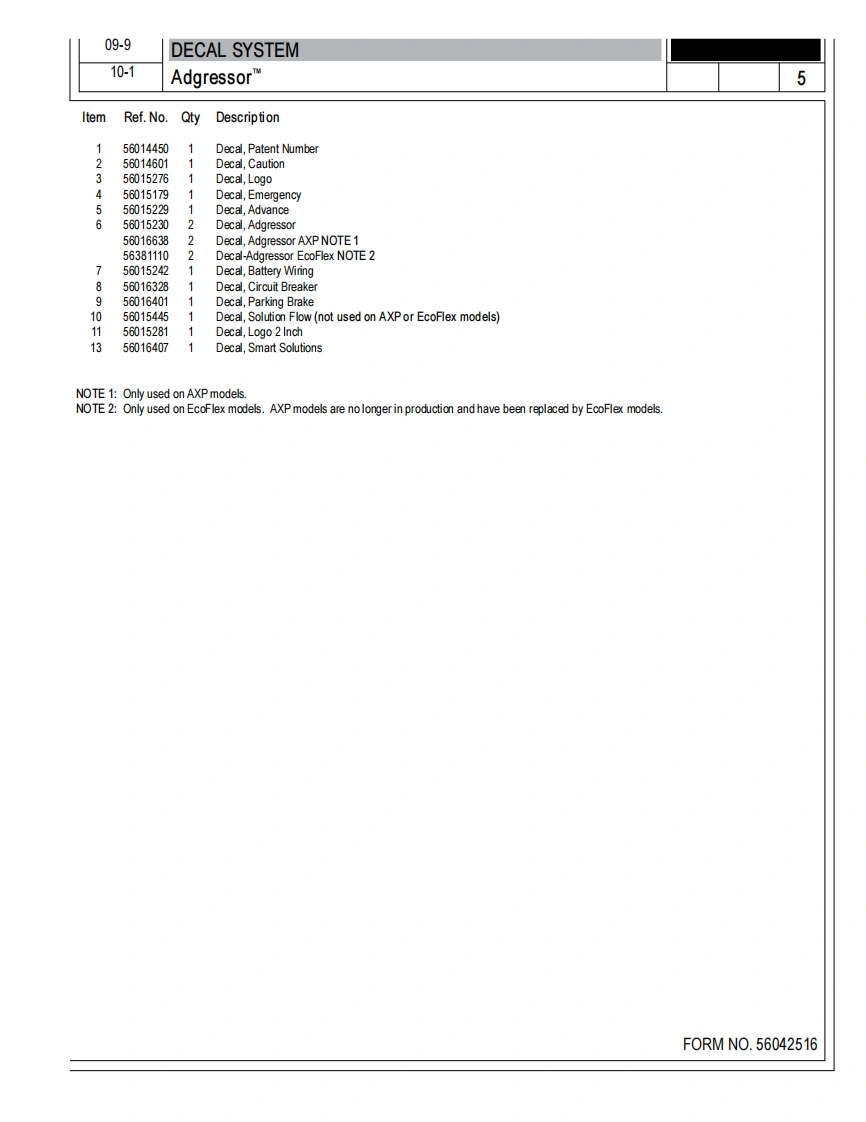 AdgressorT,AdgressorTM EcoFlexPARTS LISTStandard Models:563909043220D,563909063220C),563909083520D),563909123820D),563909103520C),563909143820C)EcoF月ex Models:56381003X3220D),56381005X3520D),56381007X3820D),56381004X3220C,563810060X3520C),563810080X3820C)Obsolete Models:56390903(2820C-AXP),56390901(2820D-AXP),563909073220C-AXP),563909053220D-AXP)56390911(3520C-AXP),563909093520D-AXP),56390915(3820C-AXP1,56390913(3820D-AXP5638100002820D),563810022820C),56390900(2820D),563909022820C)®Advance9/09 revised3/13F0RMN0.56042516