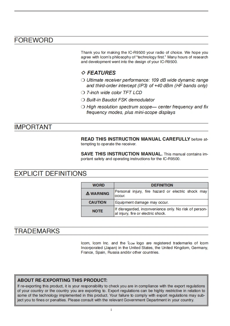 IC-R9500-操作说明书手册找手册网17天前发布关注私信20.25MB194页030IC-R9500-操作说明书手册此内容为付费资源,请付费后查看¥19¥21黄金会员免费钻石会员免费登录购买付费资源 第1页 / 共194页 第2页 / 共194页 第3页 / 共194页 第4页 / 共194页 第5页 / 共194页 第6页 / 共194页 第7页 / 共194页 第8页 / 共194页 第9页 / 共194页 第10页 / 共194页 试读已结束,还剩184页,您可下载完整版后进行离线阅读 THE END艾可慕 文本预览 COMMUNICATIONS RECEIVERC-R9500Instruction ManualA-6553H1EX-①Printed in Japan©2007 lcom Inc. 查看更多 收起部分 喜欢就支持一下吧收藏