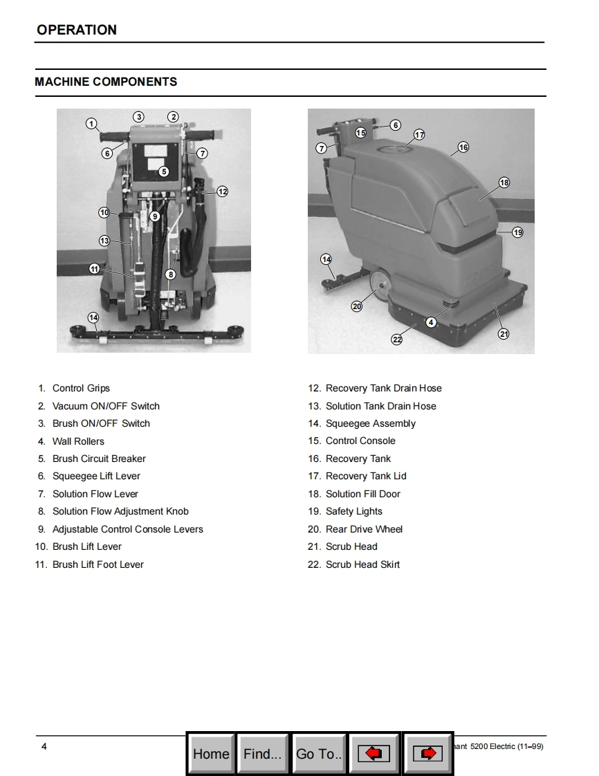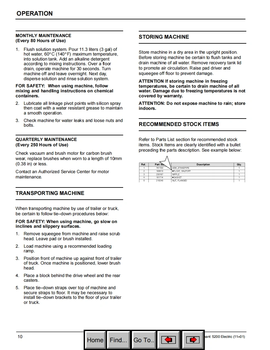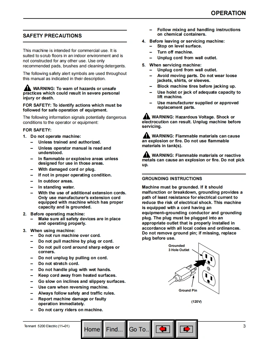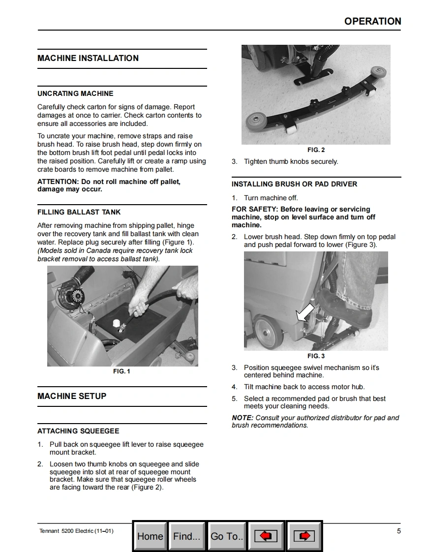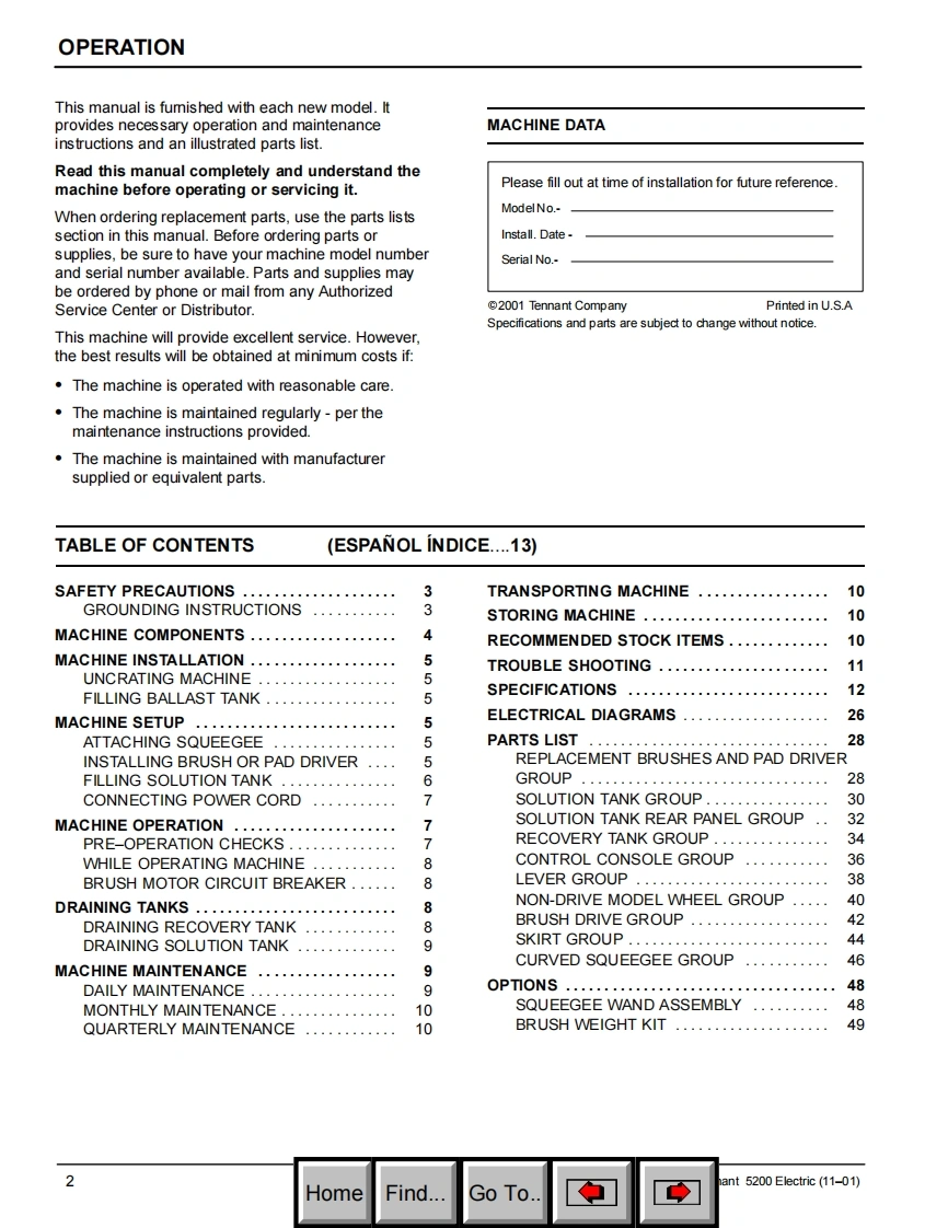 ENGLISH-ESPANOLTENNANT5200Electric Automatic ScrubberFregadora Automatica ElectricoModel No.:Operator and Parts Manual609601Manual de Operacion y de PiezasTENNANT COMPANYCommercial Products12875 RANSOM STREETHOLLAND MI 49424FAX:1-800-678-4240609519CUSTOMER SERVICE:1-800-982-7658ReV.01(11-01)HomeFind...Go To