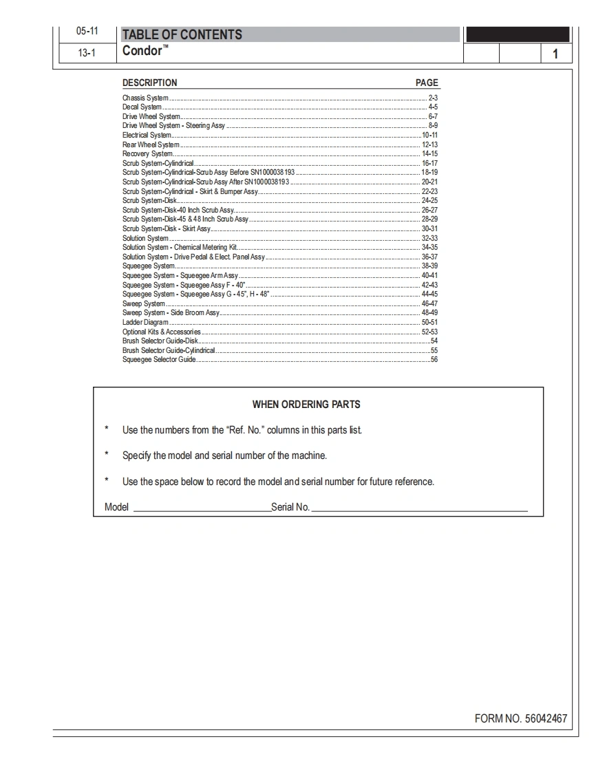CondorT,Condor EcoFlexTPARTS LISTStandard Models:56413000(4030D),56413001(4030C/w/sweep system,56413891(4030C/wlo sweep system)56413002(4530D),56413003(4530c/w/sweep system),56413892(4530C/wlo sweep system)56413004(4830Dl,56413005(4830c1 w/sweep5y5tem,56413893(4830c1w/o5weep5y5temjObsolete AXP Models:56413008(4030D-AXP),56413009(4030C-AXP w/sweep system),56413894(4030C-AXP w/o sweep system)56413013(4530D-AXP),56413014(4530C-AXP w/sweep system),56413895(4530C-AXP w/o sweep system)56413779(4830D-AXP),56413780(4830C-AXP w/sweep system),56413896(4830C-AXP w/o sweep system)EcoFlex Models:56381032(X4030D),56381033(X4030c/w/sweep system),56381043(X4030C/wlo sweep5 ystem56381034X4530D,56381035(X4530c1w/sweep sys5teml,56381044(X4530c1wo5 weep sy5tem)56381036(X4830D),56381037(X4830C w/sweep system),56381045(X4830C/w/o sweep system)Advance11/05 revised8/13F0RMN0.56042467
