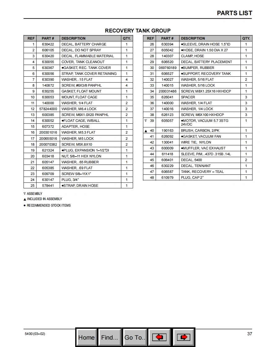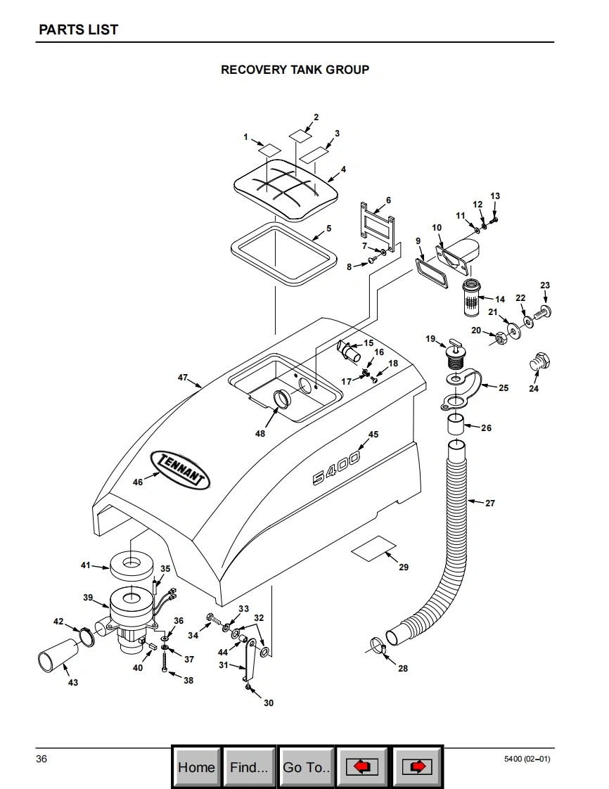 TENNANT5400ScrubberModel No.:Operator and Parts Manual606931-Disk Standard,610mm(24 in)606932-Disk ESTM,610mm(24 in)607525-Disk Wand Prep,610mm(24 in)606933-Disk Deluxe,610mm(24 in)606934-Cylindrical Standard,610mm(24 in)606935-Cylindrical ESTM,610mm(24 in)607526-Cylindrical Wand Prep,610mm(24 in)606936-Cylindrical Deluxe,610mm(24 in)610877-Disk Standard,660mm(26 in)610878-Disk ESTM,660mm (26 in)610879-Disk Wand Prep,660mm(26 in)610880-Disk Deluxe,660mm(26 in)TENNANT⑤4▣▣606862Rev.04(03-02)HomeFind...Go To.