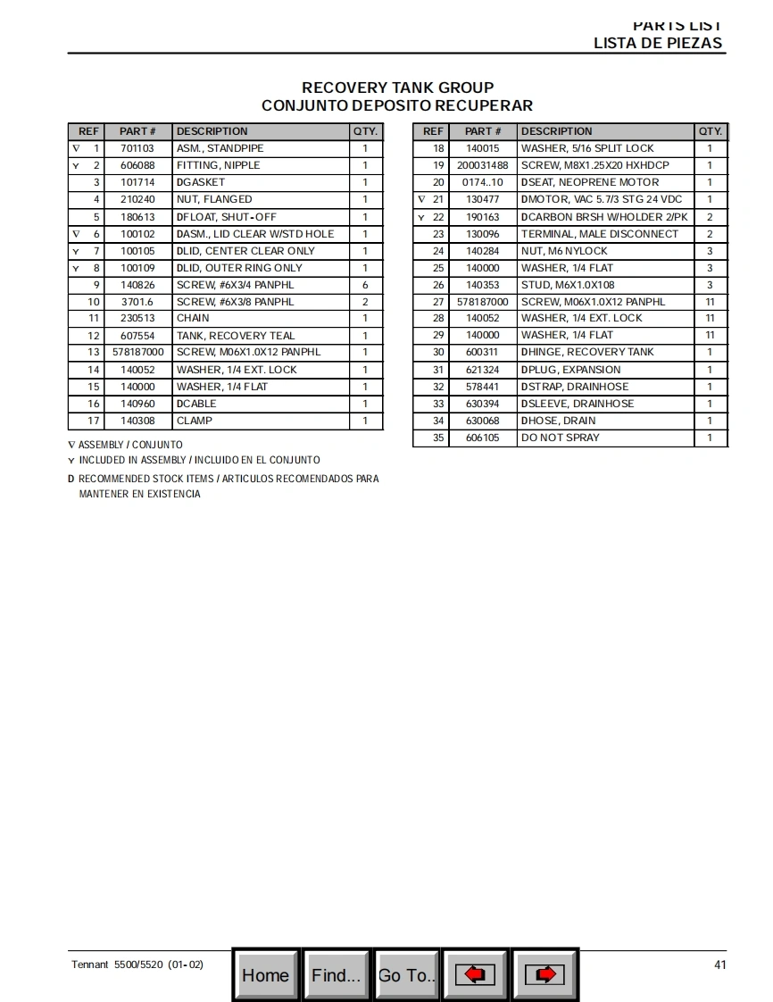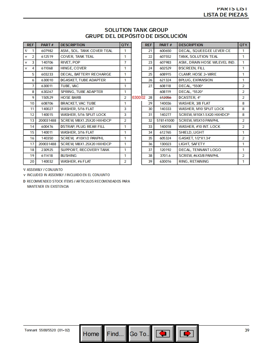 ENGLISH ESPANOLTENNANT5500/5520Automatic ScrubberFregadora AutomaticaModel No.:Operator and Parts Manual613041-5500Manual del Operador y Piezas613162-5500 Quick Ship Pac613042.5520613163-5520 Quick Ship PacTENNANT COMPANYCommercial Products12875 RANSOM STREETHOLLAND MI 49424 U.S.A.CUSTOMER SERVICE:1-800-982-76581-616-786-2330612814FAX1-800-678-42401-616-786-2345Rev.01(01-02)HomeFind..Go To