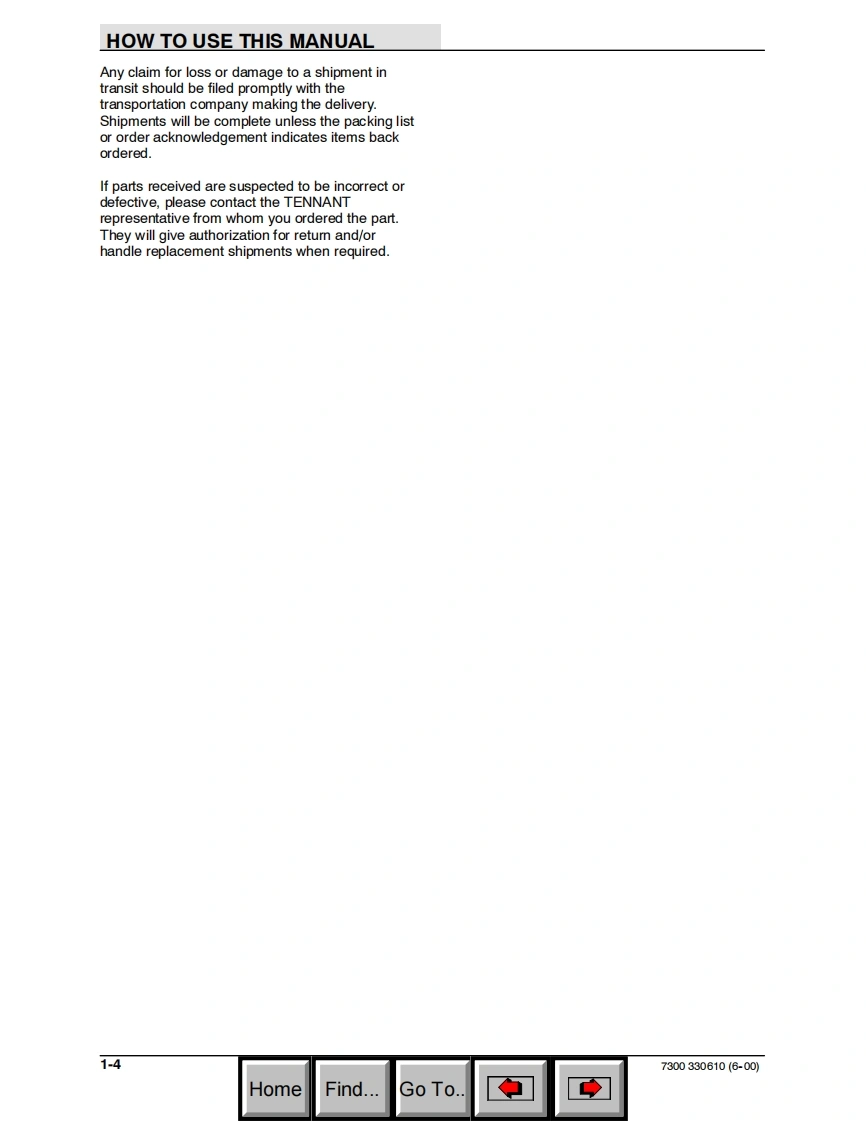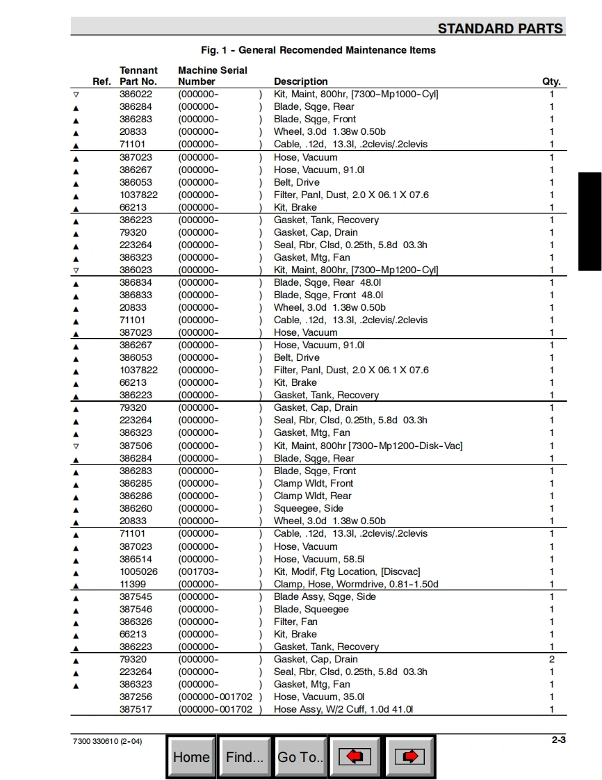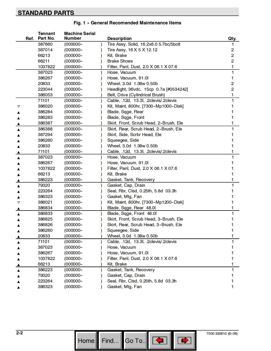 TENNANT7300(Battery)Rider ScrubberParts ManualEaSTFoam Scrubbing TechnologyH2OThe Safe Scrubbing AlternativeAn ORBIO TechnologyES Extended Scrub SystemTennantTrueTM Parts and SuppliesNorth America International330610Rev.15(3-2011)www.tennantco.comHomeFind...Go To.