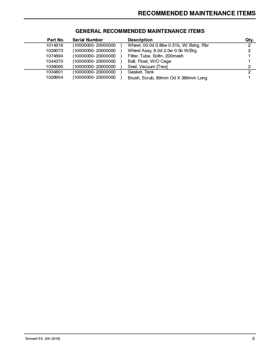 TENNANT-E5-100000-200000-9-18操作与维修手册含电器原理图找手册网18天前发布关注私信1.47MB37页027TENNANT-E5-100000-200000-9-18操作与维修手册含电器原理图此内容为付费资源,请付费后查看¥19¥21黄金会员免费钻石会员免费登录购买付费资源 第1页 / 共37页 第2页 / 共37页 第3页 / 共37页 第4页 / 共37页 第5页 / 共37页 第6页 / 共37页 第7页 / 共37页 第8页 / 共37页 第9页 / 共37页 第10页 / 共37页 试读已结束,还剩27页,您可下载完整版后进行离线阅读 THE ENDTENNANT(坦能) 文本预览 TENNANTE5Portable Carpet Extractor(S/N10000000-20000000)Parts ManualModels9004194-120VNorth America Japan回称▣For the latest Parts manuals and other9006286language Operator manuals,visit:ReV.06(09-2018)www.tennantco.com/manuals 查看更多 收起部分 喜欢就支持一下吧收藏