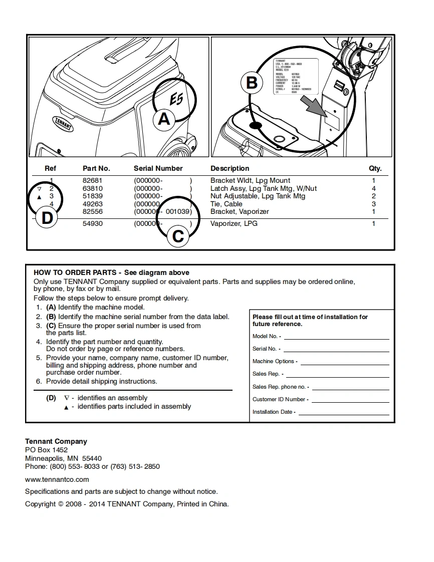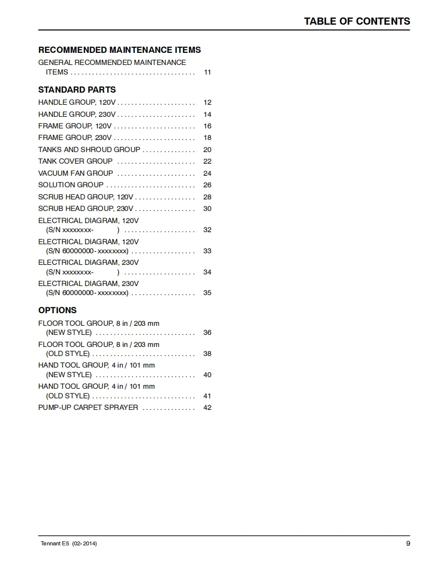 TENNANTE5Portable Carpet Extractor(S/N60000000-70000000)Parts Manual国0Models9004194-120V9004198-230VFor the latest Parts manuals and otherlanguage Operator manuals,visit:5www.tennantco.com/manualsNorth America International Japan9003760ReV.05(02-2014)www.tennantco.com