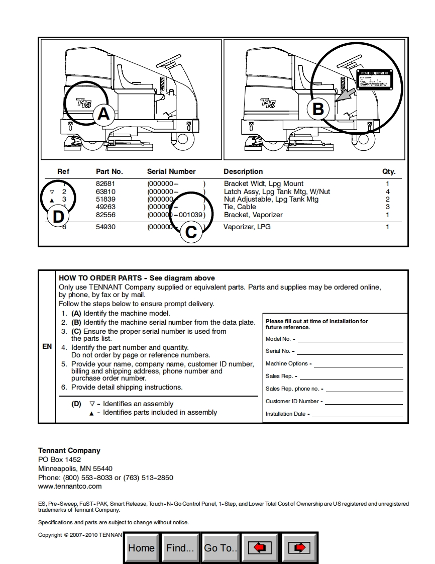 TENNANTT15(Electric)Rider ScrubberParts Manual期aS红Ccoh20Foam Scrubbing TechnologyELECTRICALLY CONVERTED WATERThe Safe Scrubbing AlternativeESExtended Scrub System331551North America InternationalRev.04(3-201o)Wwww.tennantco.comHomeFind...Go To
