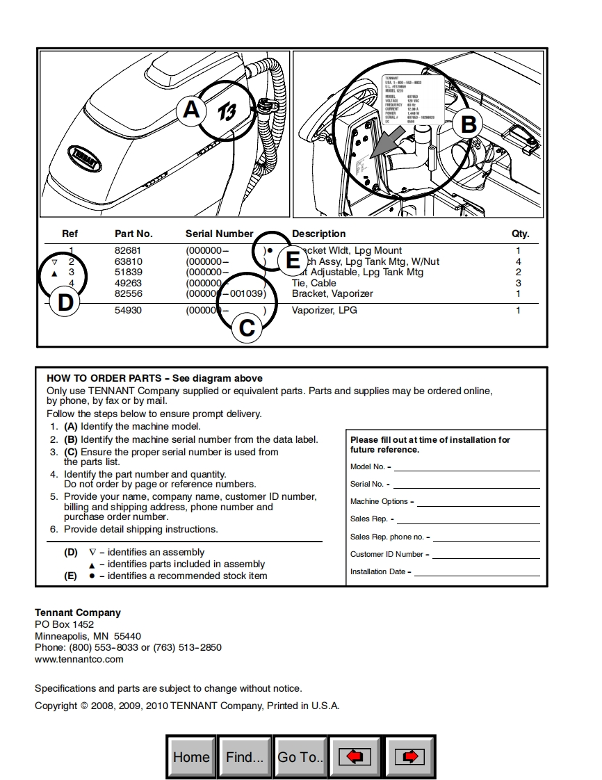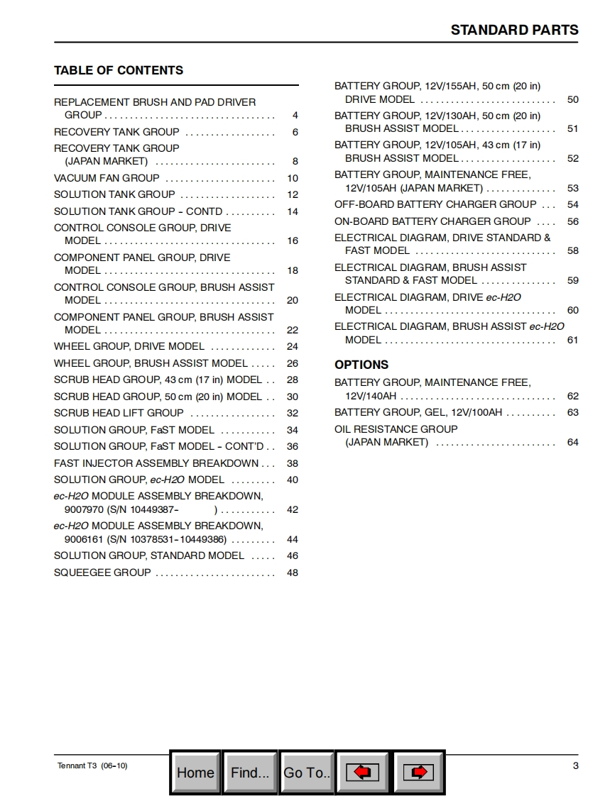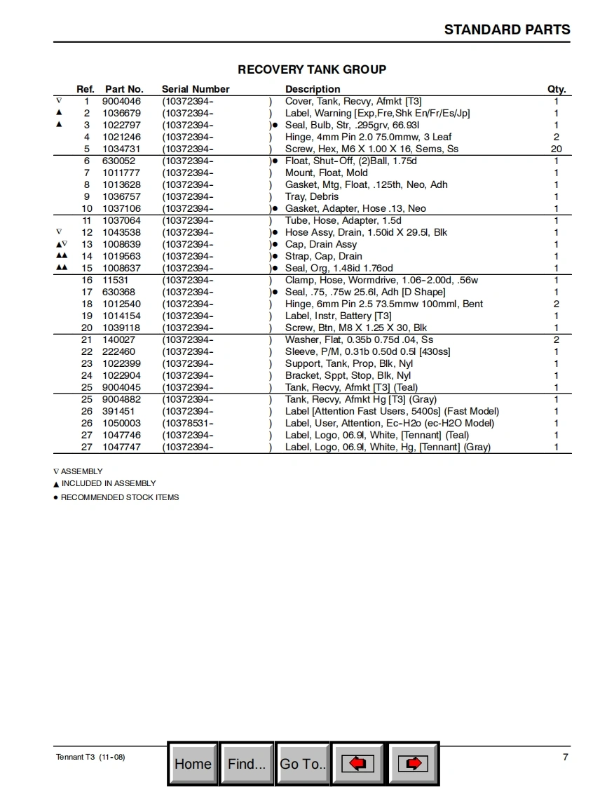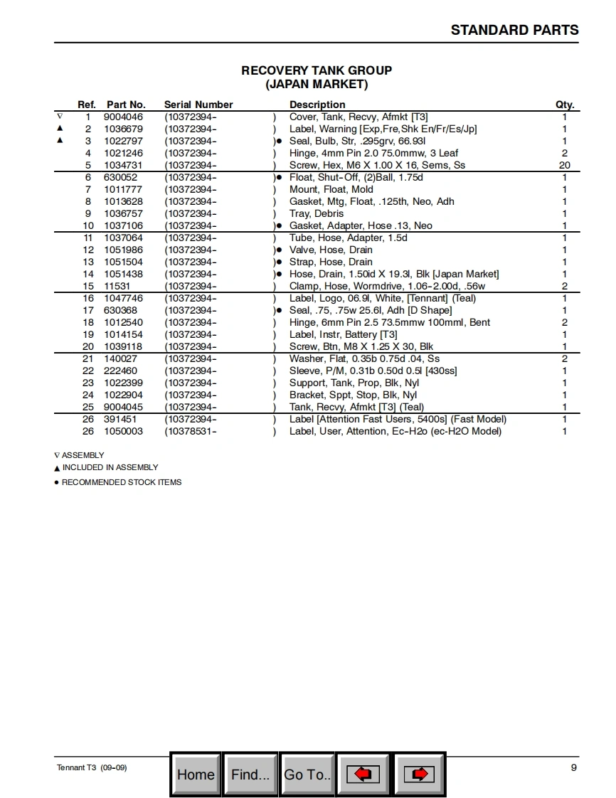 TENNANTT3ScrubberParts Manual(S/N10372394-10477735)FaSTecoh20Foam Scrubbing TechnologyThe Safe Scrubbing AlternativeELECTRICALLY CONVERTED WATERHygenic Fully Cleanable Tanks9004172North America /InternationalReV.05(06-2010)www.tennantco.comHomeFind...Go To.
