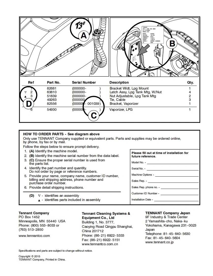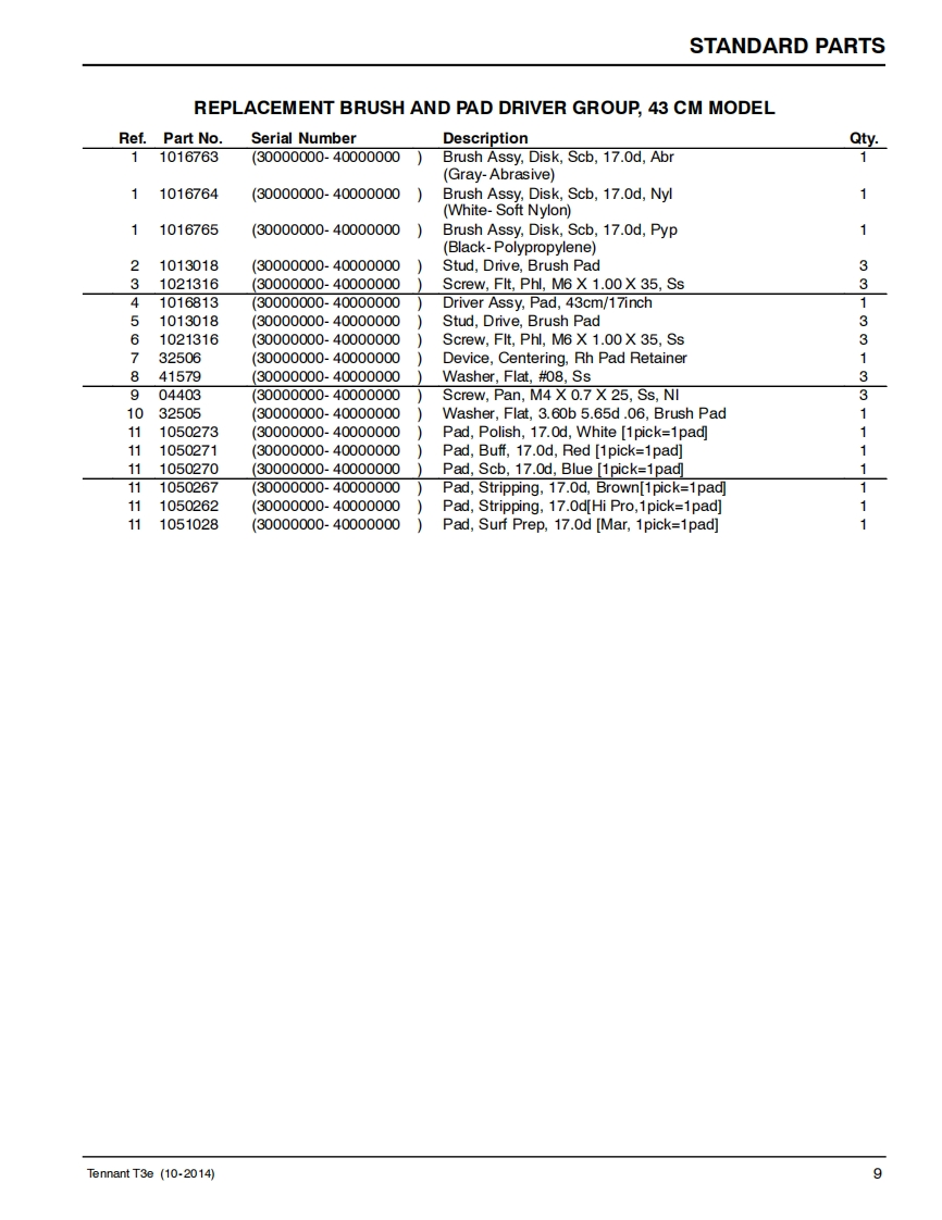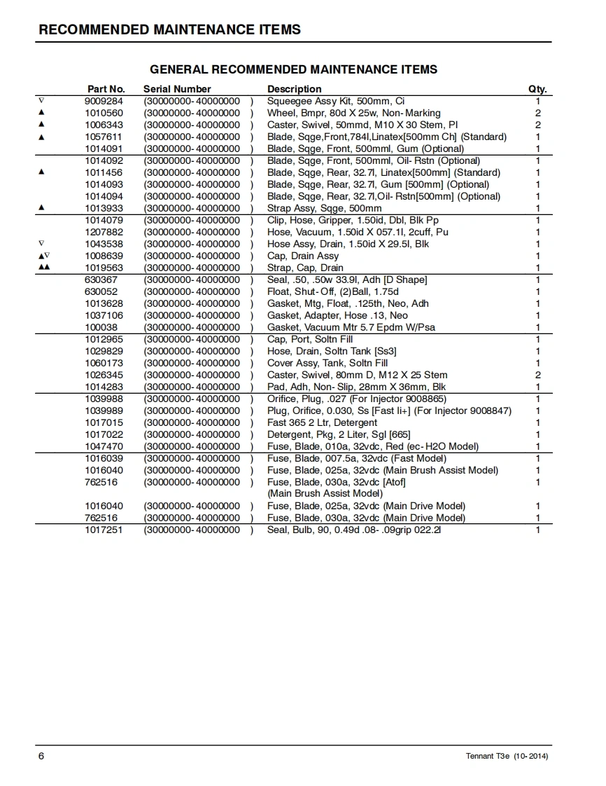 TENNANTT3eScrubber-DryerParts Manual@0(S/N30000000-40000000)S红H2○Foam Scrubbing TechnologyThe Safe Scrubbing AlternativeAn ORBIO Technology回▣For the latest Parts manuals and otherlanguage Operator manuals,visit:www.tennantco.com/manualsInternational9012798Rev.02(11-2015)www.tennantco.com