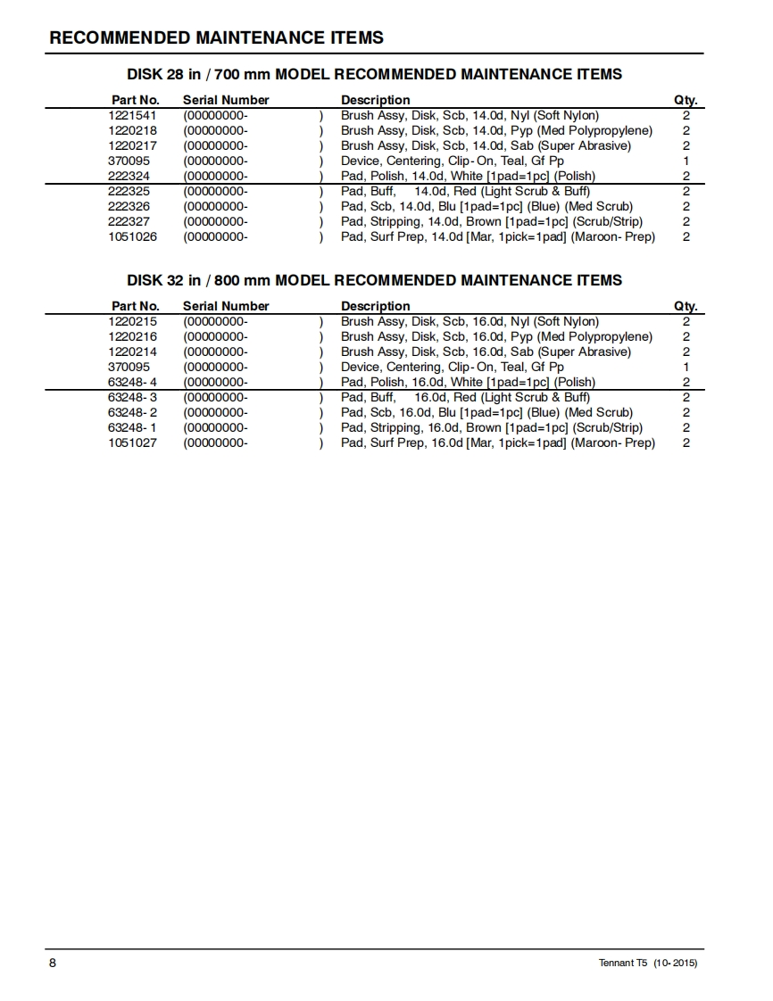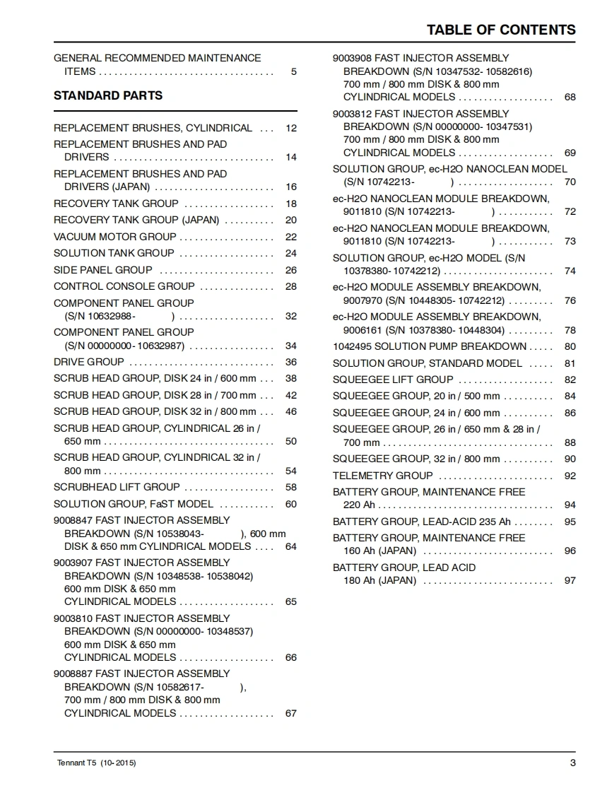 TENNANTT5Automatic ScrubberParts Manual@0FaSTH2⊙Foam Scrubbing TechnologyThe Safe Scrubbing AlternativeNanoCleanHygenic Fully Cleanable TanksQA Controls TMTennantTrue®PartsIRISR a Tennant TechnologyFor the latest Parts manuals and otherlanguage Operator manuals,visit:www.tennantco.com/manuals9002329North America InternationalRev.16(04-2016)www.tennantco.com