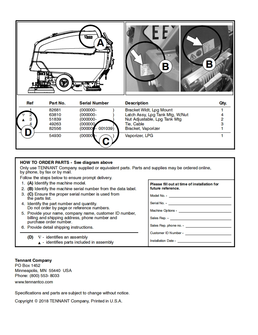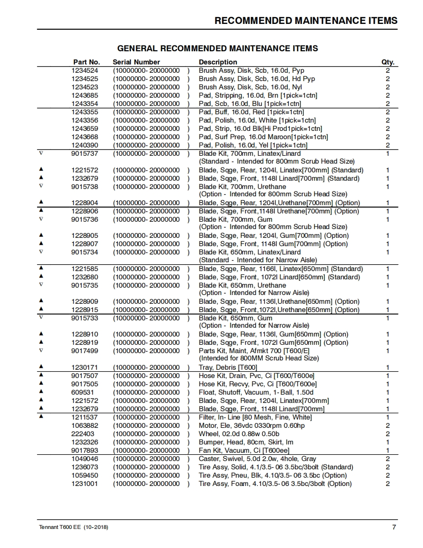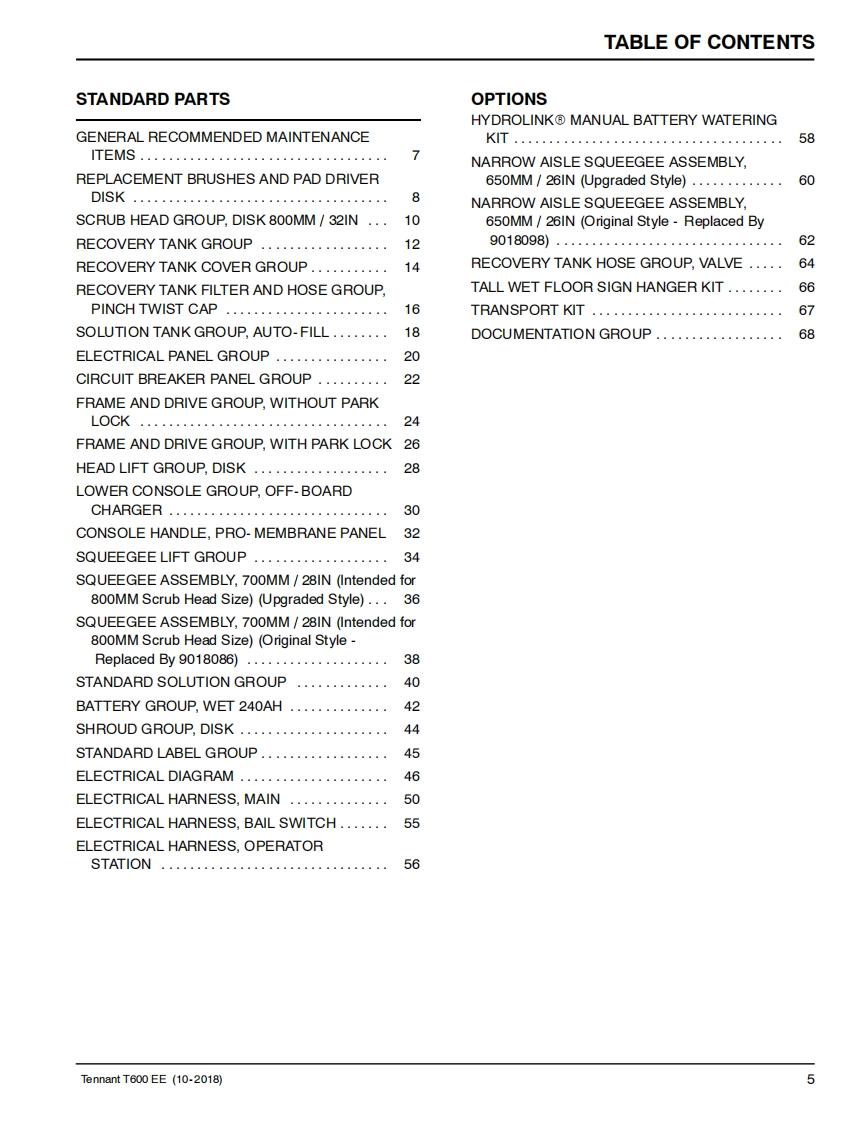 TENNANTT600 EEWalk-Behind Floor ScrubberParts Manual(S/N10000000-20000000)Hygenic Fully Cleanable Recovery TankTennantTrue PartsInsta-FitTM AdapterNorth America International马吗9016609For the latest Parts manuals and otherlanguage Operator manuals,visit:ReV.01(10-2018)www.tennantco.com/manual