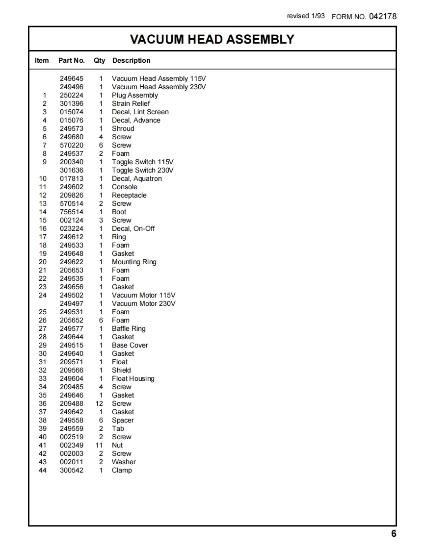 AQUATRONMODELS A80XL,A80XL-5THIS PARTS LIST IS FOR MACHINESAFTER SERIAL NUMBER 209394.PARTSLISTADVANCEINTERNATIONAL HEADQUARTERS,Plymouth,MN 55447-3408UROPE.Pontyclun.Md-Glamorgan CF7 8YZ Wales,UnitedCANADA,1295 Crestlawn Drive.Mississauga.Ontario L4W 1A91988,Advance Machine CompanyFORM NUMBER 042178 1/88