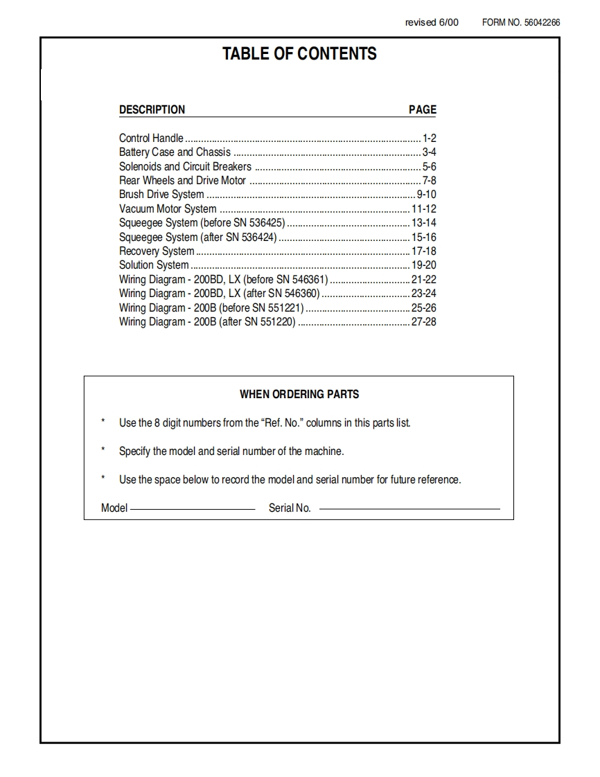 ConvertamaticTM 200B,200BDConvertamaticTM 200LX6200PARTS LISTAdvance M0DELS56324001(200B),56324000(200BD)56324000(200LX9This parts list is for machines after serial number 511035All models covered in this manual are OBSOLETEAdvanceby Nilfisk-Advancerevised 9/03 Form Number 56042266