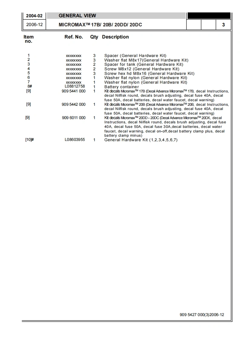 ADVANCE-Battery_WalkBehind_Scubber_Micromax17-20B说明书手册含电器原理图找手册网11小时前发布关注私信7.43MB40页042ADVANCE-Battery_WalkBehind_Scubber_Micromax17-20B说明书手册含电器原理图此内容为付费资源,请付费后查看¥19¥23黄金会员免费钻石会员免费立即购买您当前未登录!建议登陆后购买,可保存购买订单付费资源 第1页 / 共40页 第2页 / 共40页 第3页 / 共40页 第4页 / 共40页 第5页 / 共40页 第6页 / 共40页 第7页 / 共40页 第8页 / 共40页 第9页 / 共40页 第10页 / 共40页 试读已结束,还剩30页,您可下载完整版后进行离线阅读 THE ENDADVANCE 文本预览 Micromax 17B-20BMicromax 20DD-20DC00PARTS LISTAdvance models:9087043020-9087044020-9087045020-9087046020Advanceby Nilfisk-Advance9095427000(3)2006-12 查看更多 收起部分 喜欢就支持一下吧收藏