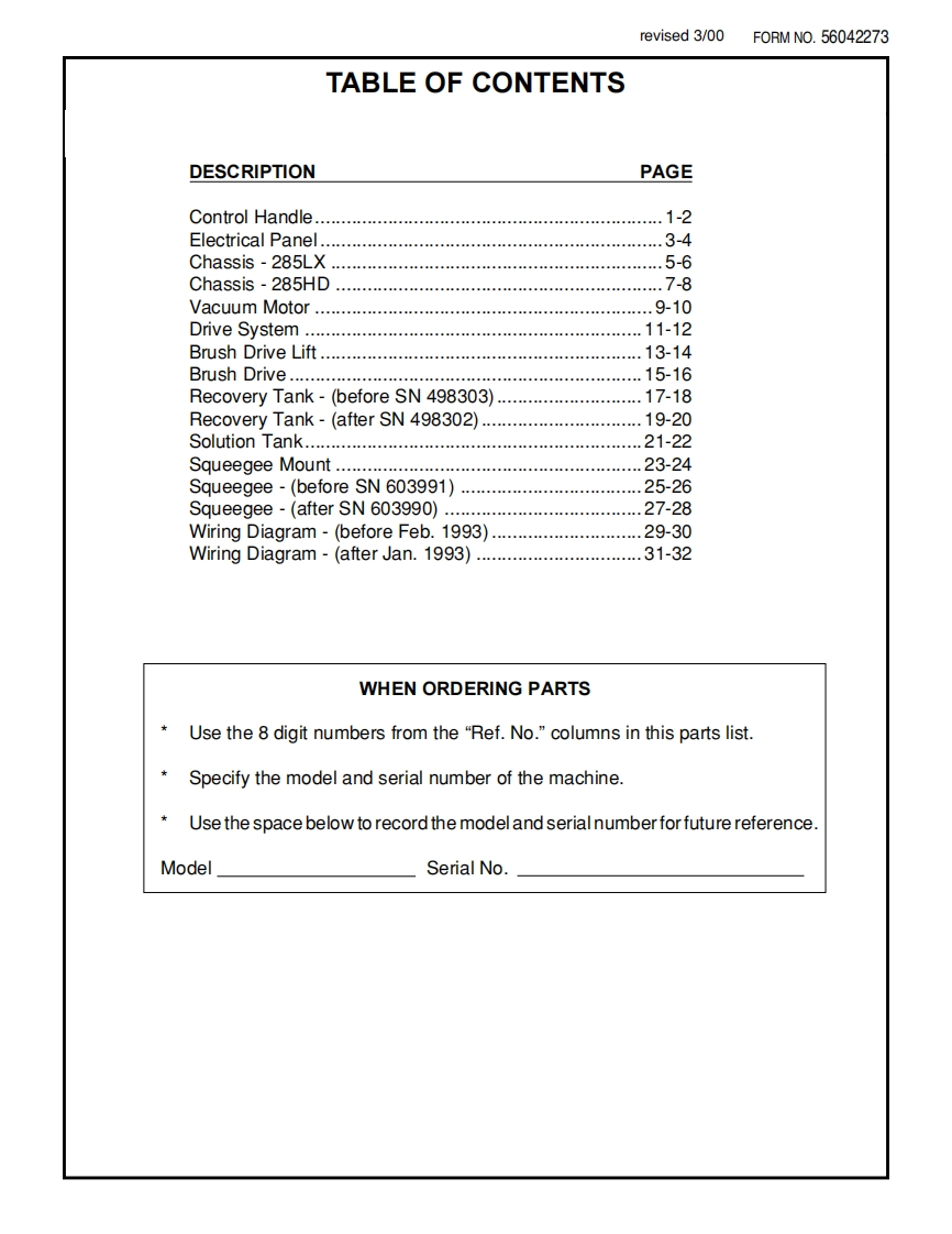 Convertamatic 285LXHydro-RetrieverT 285HDLynxTM 285PARTS LISTAdvance MODELS 56391007(285LX)56391008(285HD&Lynx)All models covered in this manual are Obsolete.This parts list is for machines after serial number 488316)Advanceby Nilfisk-Advancerevised 11/01 Form Number 56042273