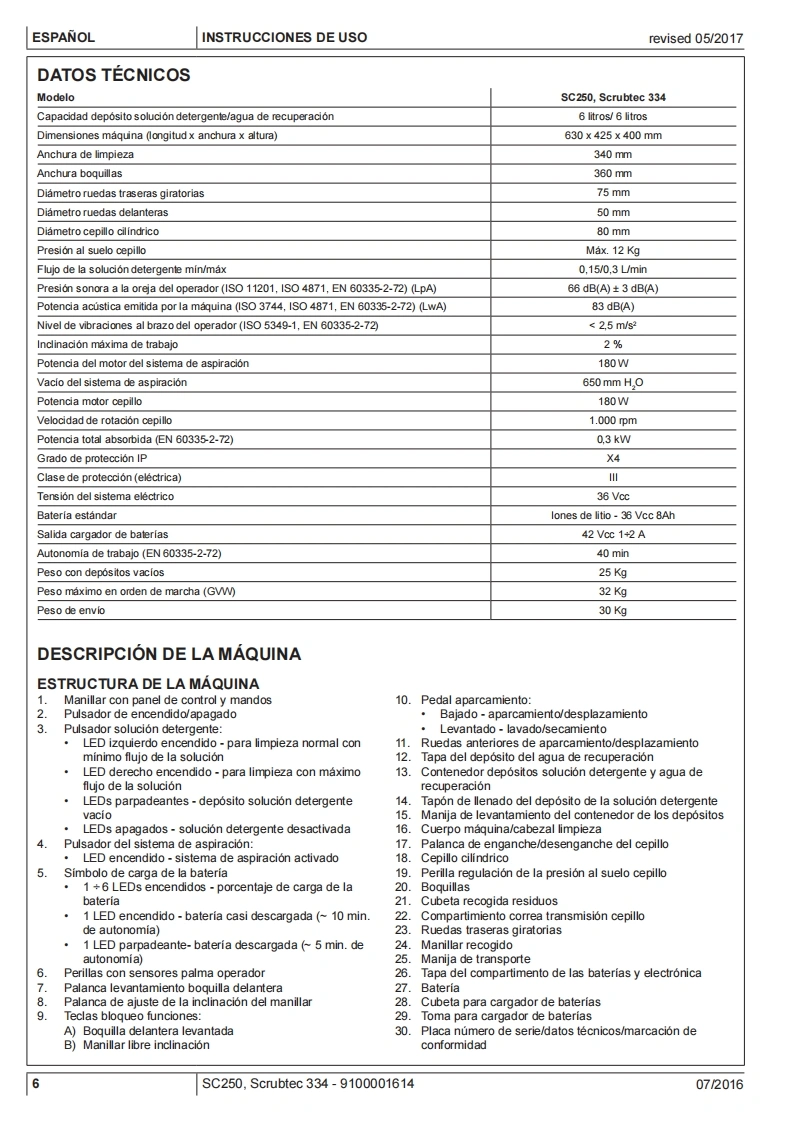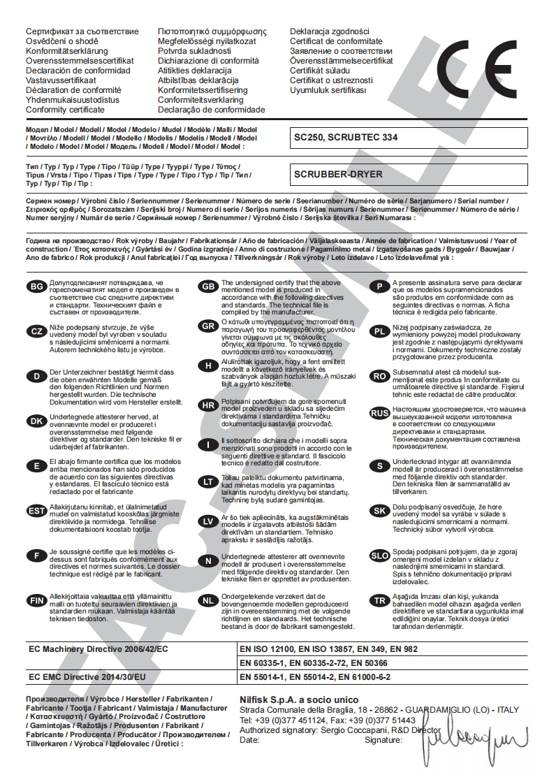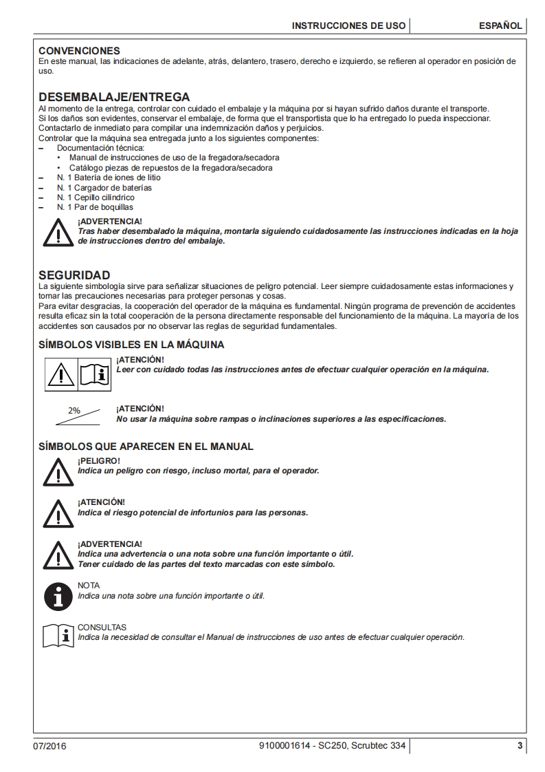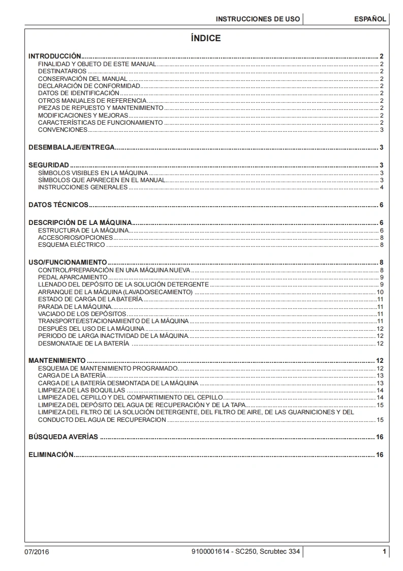 SC250,SCRUBTEC 334Instructions for useInstrucciones de usoOδnyiES xpnonsIstruzioni d'usoOriginal instructionsInstrucoes de uso07/2016 revised082017Espanol(E)EAAnvikd9100001614△的ItalianoPortugues日Model:9087380020.9087382020©Nilfisk