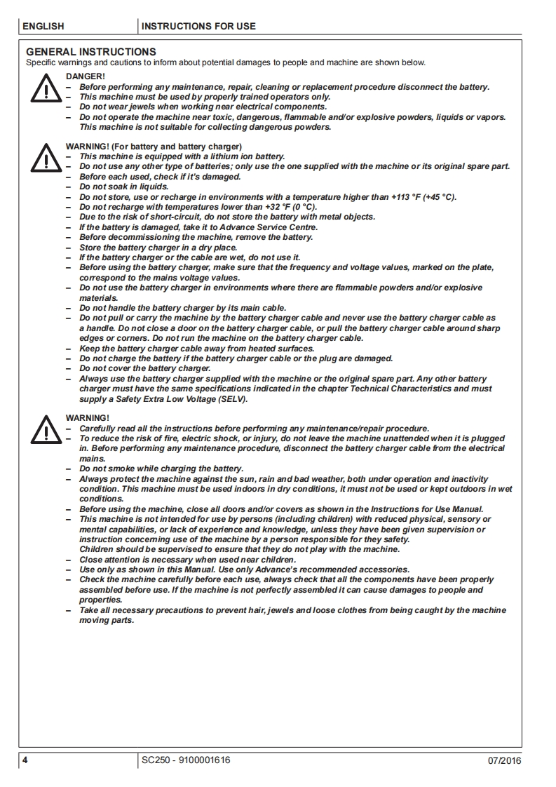 ADVANCE-SC250-manual操作与维护手册说明书手册含电器原理图找手册网8小时前发布关注私信7.84MB68页040ADVANCE-SC250-manual操作与维护手册说明书手册含电器原理图此内容为付费资源,请付费后查看¥19¥23黄金会员免费钻石会员免费立即购买您当前未登录!建议登陆后购买,可保存购买订单付费资源 第1页 / 共68页 第2页 / 共68页 第3页 / 共68页 第4页 / 共68页 第5页 / 共68页 第6页 / 共68页 第7页 / 共68页 第8页 / 共68页 第9页 / 共68页 第10页 / 共68页 试读已结束,还剩58页,您可下载完整版后进行离线阅读 THE ENDADVANCE 文本预览 SC250的△凹Instructions for Use-Original InstructionsInstrucciones de UsoInstructions d'UtilisationInstrucǒes de UsoModel:9087381020EnglishEspanolFrancaisAdvancePortugues07/2016(1)F0RMNO.9100001616 查看更多 收起部分 喜欢就支持一下吧收藏