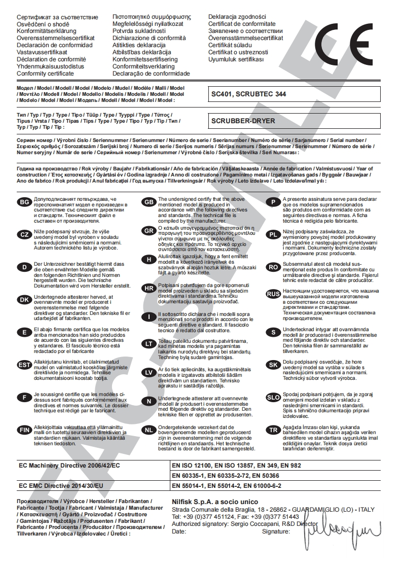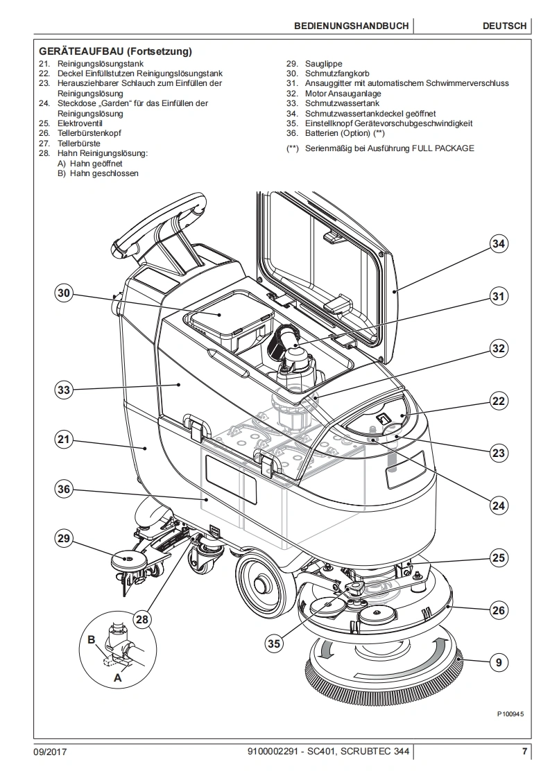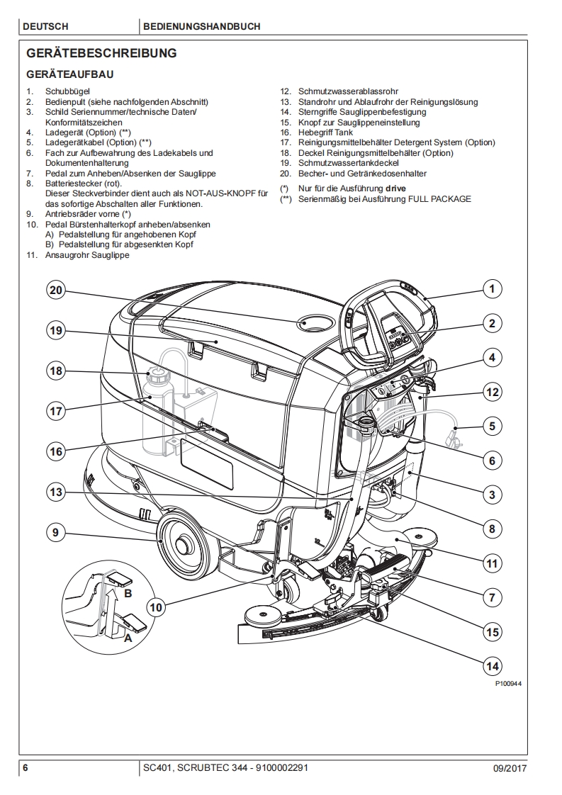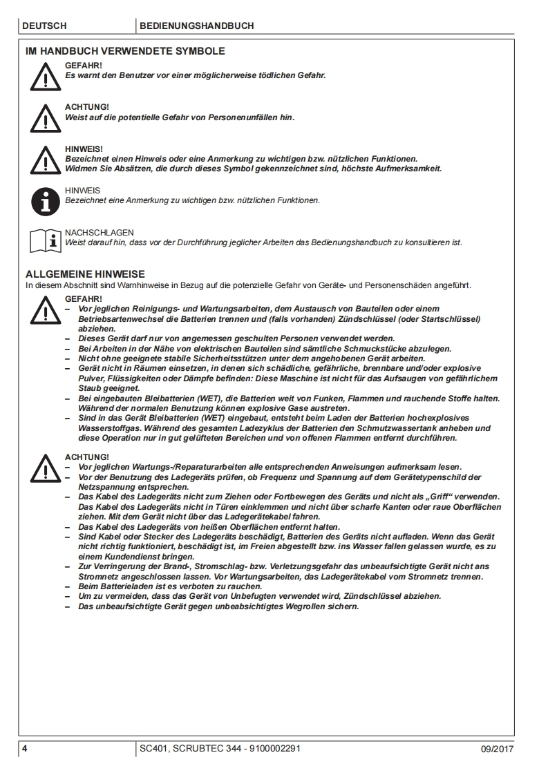 SC401,SCRUBTEC 344Instructions for useBedienungshandbuchInstructions d'utilisationInstructions for useGebruiksaanwijzing(€09/2017Deutsch(A)△画FrancaisEnglish9100002291Nederlands①Model No.:9087390020.9087391020.9087398020.9087393020,9087396020®Nilfisk