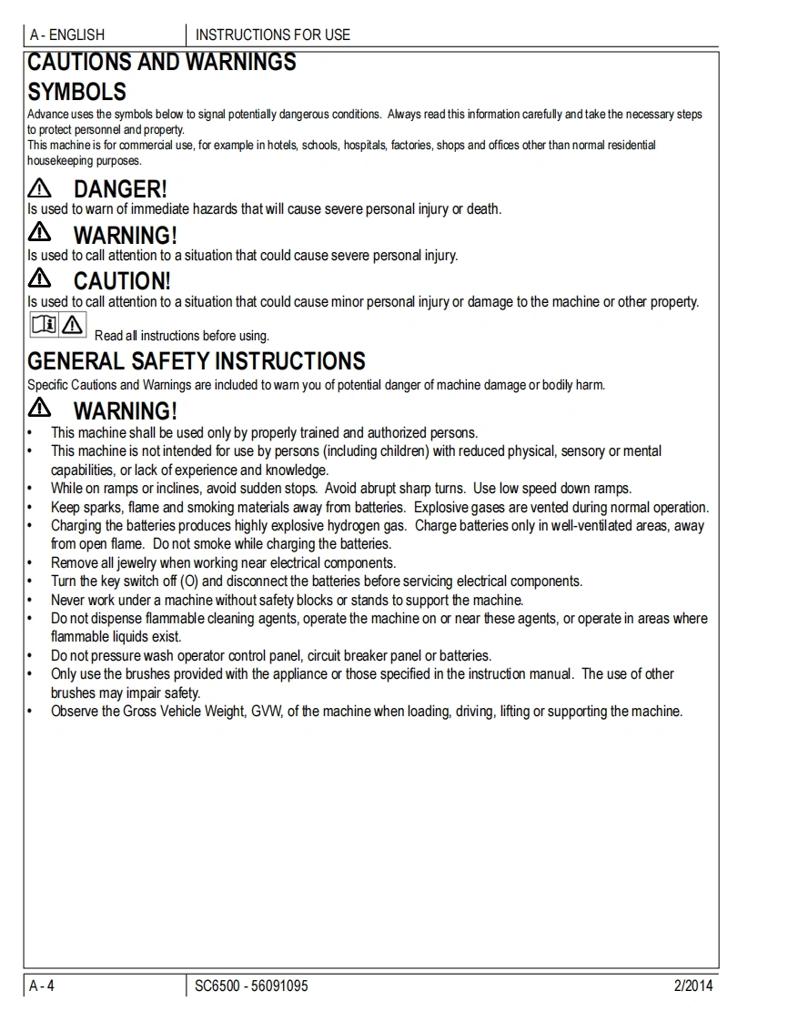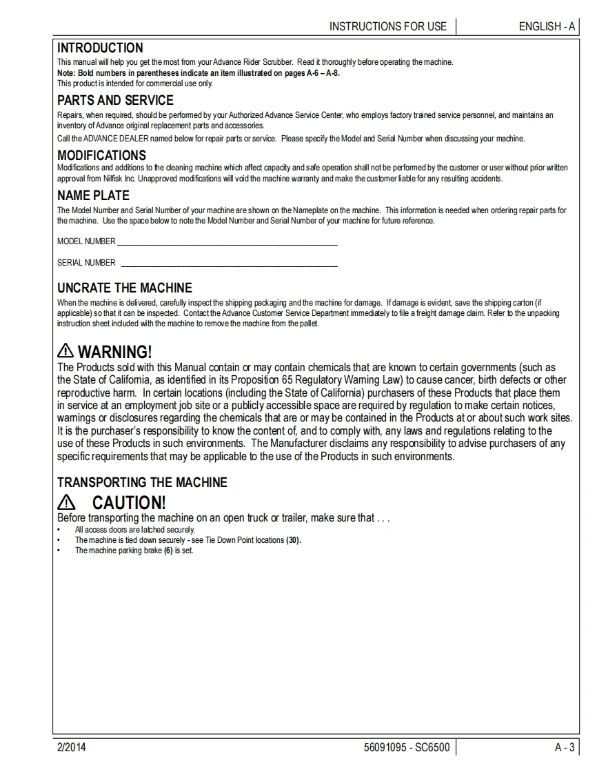 SC6500Instructions for useInstructions For UseOriginal InstructionsInstrucciones de usoManual de UtilizacaoMode d'emploi2/2014 revised 1/2020 REV FA-EnglishForm no.56091095B-EspanolC-PortuguesD-Francais的Active Models:56414010(40C),56414012(40D),56414014(45C).56414016(45D).56414018(48C),56414020(48D)OBSOLETE MODELS:56414011(40 C EcoFlex),56414013(40 D EcoFlex),56414015(45 C EcoFlex),56414017(45 D EcoFlex)),56414019(48 C EcoFlex),56414021(48 D EcoFlex)Advanceby Nilfisk