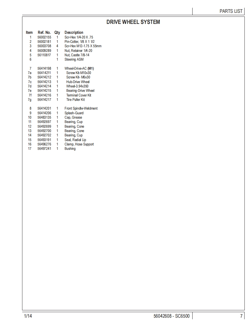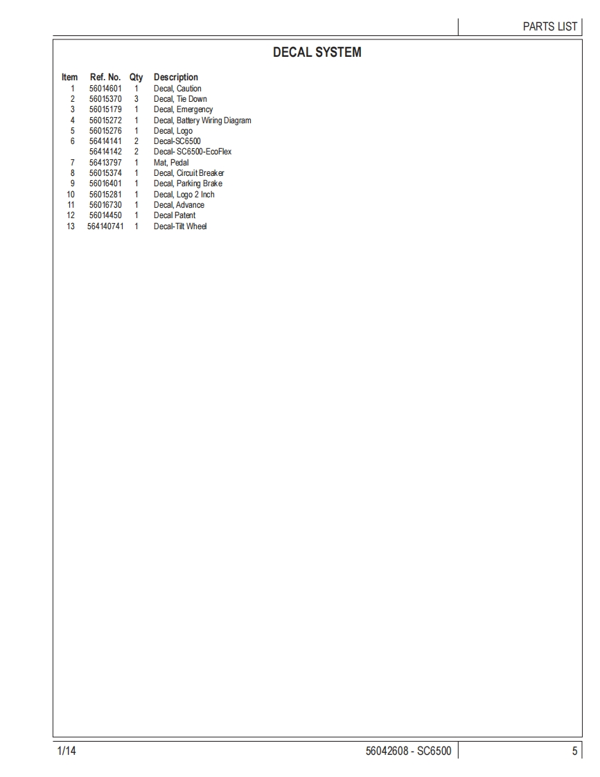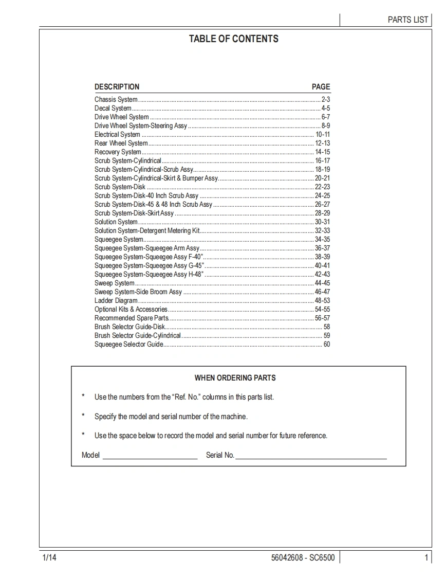 SC6500PARTS LISTModels:56414010(40C),56414011(40 C EcoF1ex),56414012(40D),56414013(40 D EcoFlex),56414014(45C),56414015(45 C EcoF1ex,56414016(45D,56414017(45 D EcoFlex),56414018(48C),56414019(48 C EcoF1ex,56414020(48D),56414021(48 D EcoF1ex)Advance1/14 revised 12/14 FORM NO.56042608 REV B