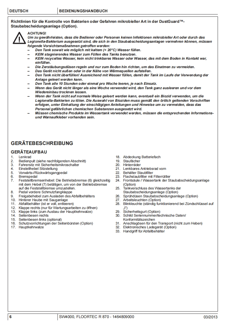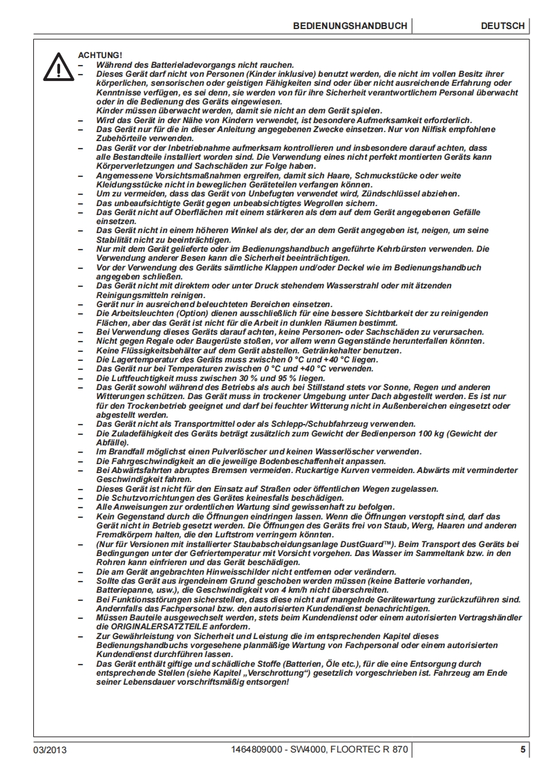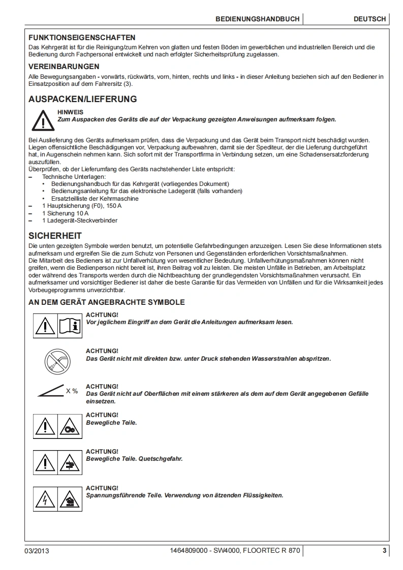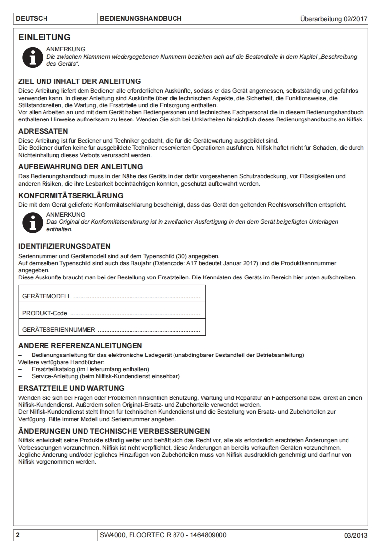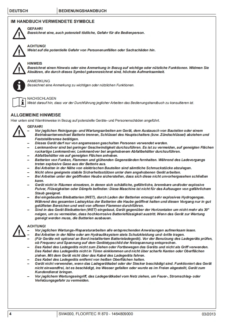 ADVANCE-SW4000-USER-MANUAL操作与维修手册说明书手册含电器原理图找手册网7小时前发布关注私信14.37MB132页033ADVANCE-SW4000-USER-MANUAL操作与维修手册说明书手册含电器原理图此内容为付费资源,请付费后查看¥19¥23黄金会员免费钻石会员免费立即购买您当前未登录!建议登陆后购买,可保存购买订单付费资源 第1页 / 共132页 第2页 / 共132页 第3页 / 共132页 第4页 / 共132页 第5页 / 共132页 第6页 / 共132页 第7页 / 共132页 第8页 / 共132页 第9页 / 共132页 第10页 / 共132页 试读已结束,还剩122页,您可下载完整版后进行离线阅读 THE ENDADVANCE 文本预览 SW4000,FLOORTEC R 870Instructions for useBedienungshandbuchInstructions d'utilisationInstructions for useGebruiksaanwijzing(€03/2013 Revised02/2017Deutsch2)△四FrancaisEnglish1464809000Nederlands@万Model:9084400010.9084404010Nilfisk 查看更多 收起部分 喜欢就支持一下吧收藏