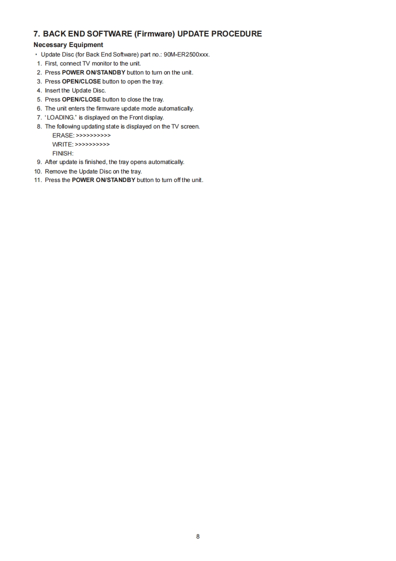 ServiceER2500 /N1s /S1s /U1sManualDVD Surround Receiver。。中4信重2发DVD际罚VIDEOdiscDIGITAL VIDEODDOLBYDIGITAL·EXPRO LOGIC IIXdtsTABLE OF CONTENTSSECTIONPAGE1.TECHNICAL SPECIFICATIONS....12.SERVICE HINTS AND TOOLS..33.WARNING AND LASER SAFETY INSTRUCTIONS4.EMERGENCY DISC EJECT...........…55.BACK END SOFTWARE(Firmware)VERSION CHECK..66.REPLACING MECHA LOADER AND MECHA TRAVERSE77.BACK END SOFTWARE (Firmware)UPDATE PROCEDURE88.POWER AMPLIFIER DC OFFSET ADJUSTMENT.......9.WIRING DIAGRAM1110.BLOCK DIAGRAM.........1211.SCHEMATIC DIAGRAM............1312.PARTS LOCATION2013.IC DATA2314.EXPLODED VIEWAND PARTS LIST...3215.ELECTRICAL PARTS LIST.............35Please use this service manual with referring to the user guide(D.F.U)without fail.修理)暩点、必变取极脱明雪在準椭操作方法在催認)上作装在行一(<尼这(1。00lER2500Part n0.90M16BW855010First Issue 2004.07ecm