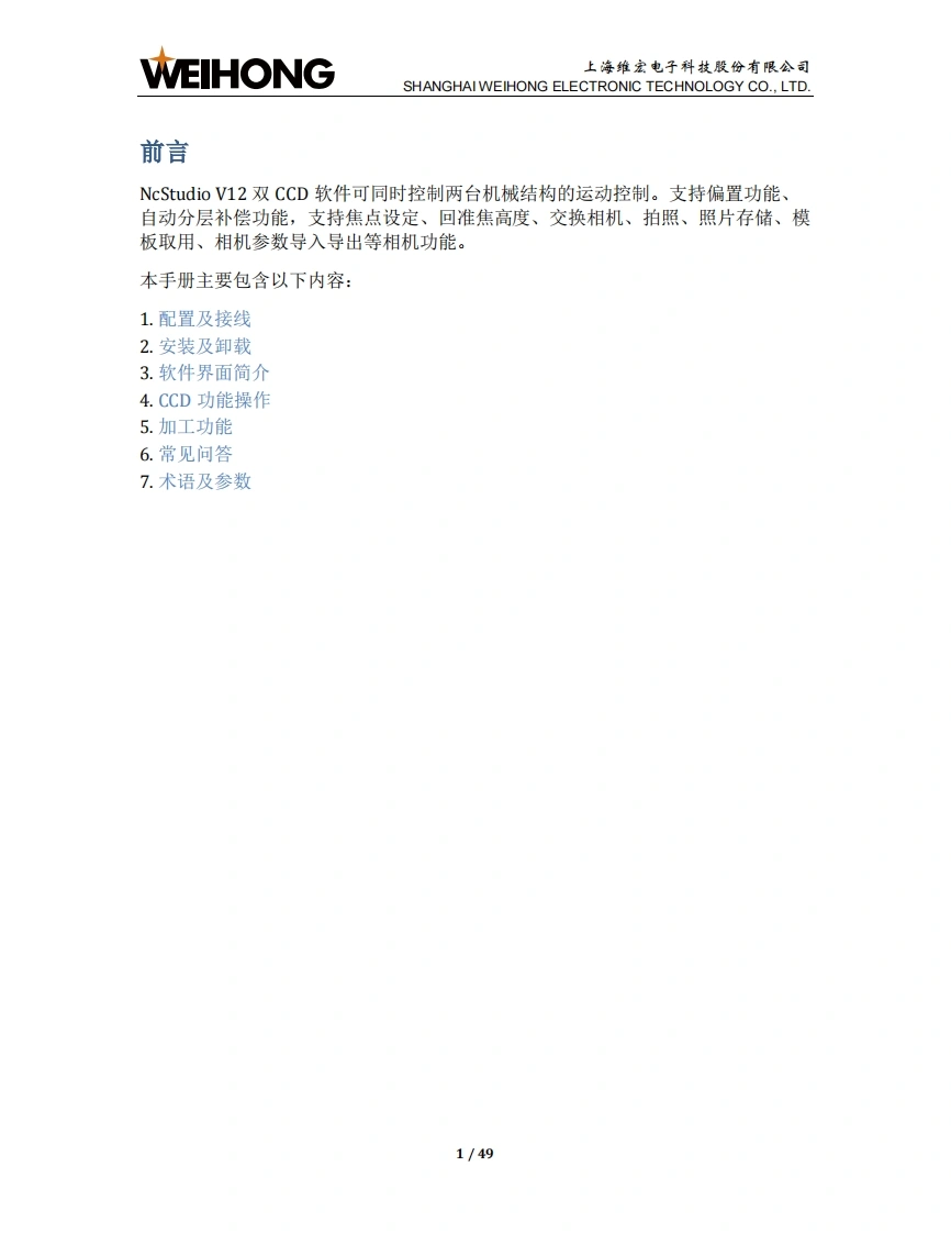 维宏NcStudio-V12双CCD控制系统用户手册-R1找手册网19小时前发布关注私信3.68MB54页028维宏NcStudio-V12双CCD控制系统用户手册-R1此内容为付费资源,请付费后查看¥19¥21黄金会员免费钻石会员免费立即购买您当前未登录!建议登陆后购买,可保存购买订单付费资源 第1页 / 共54页 第2页 / 共54页 第3页 / 共54页 第4页 / 共54页 第5页 / 共54页 第6页 / 共54页 第7页 / 共54页 第8页 / 共54页 第9页 / 共54页 第10页 / 共54页 试读已结束,还剩44页,您可下载完整版后进行离线阅读 THE END维宏 文本预览 WEIHONG维宏股份创业板:300508NcStudio V12双CCD控制系统用户手册专业·专心·专注PECIALIZED CONCENTRATED FOCUSEI 查看更多 收起部分 喜欢就支持一下吧收藏