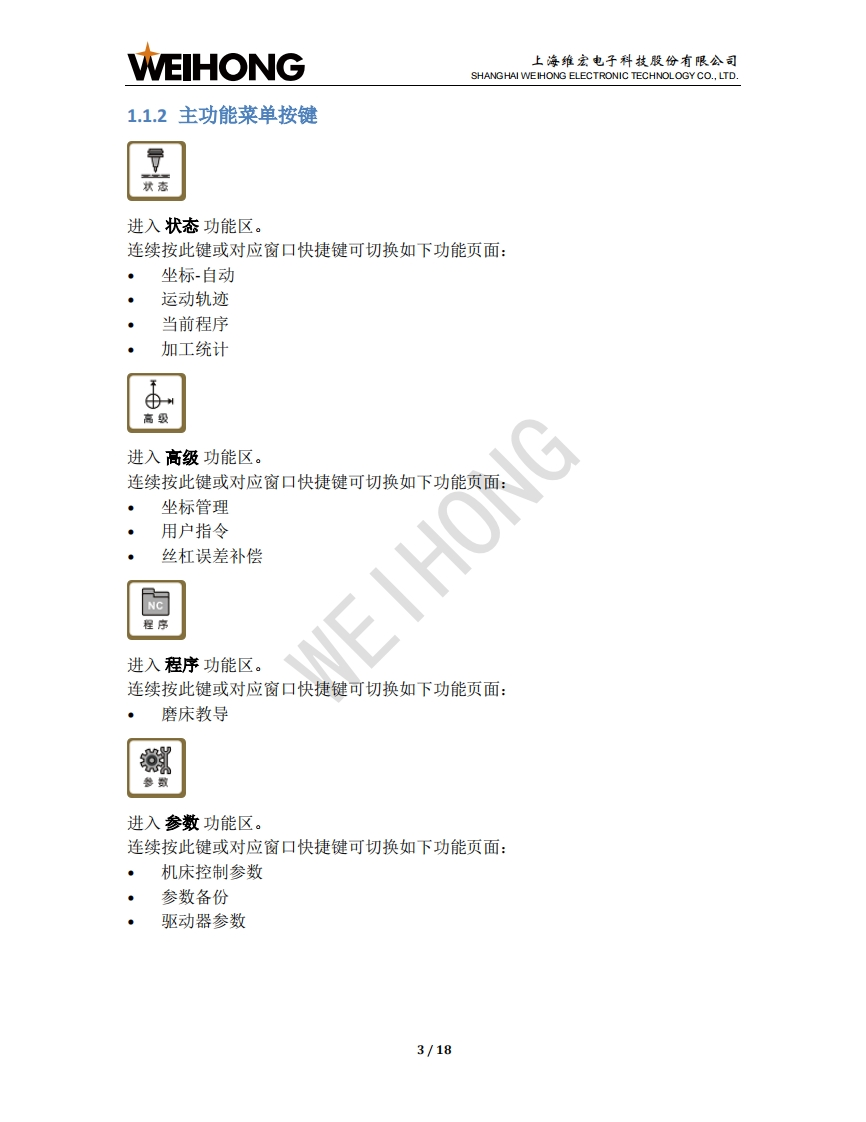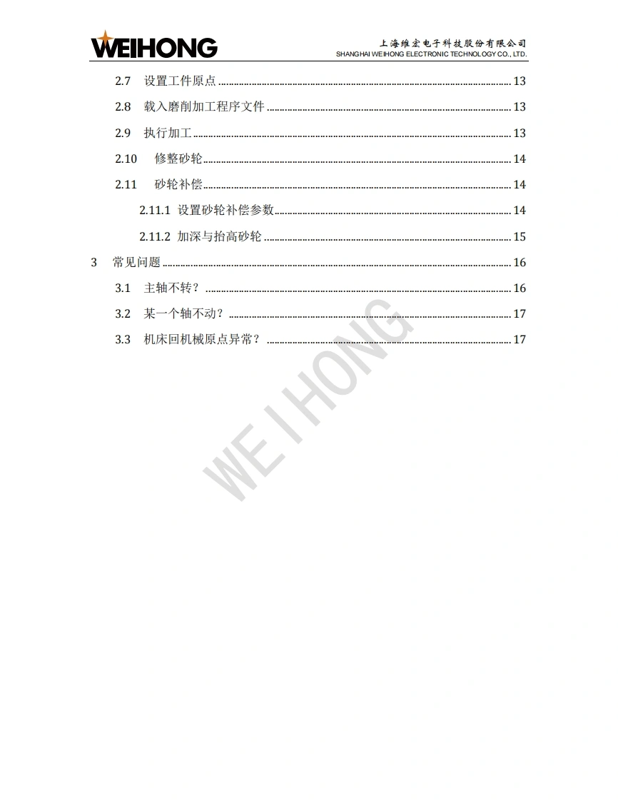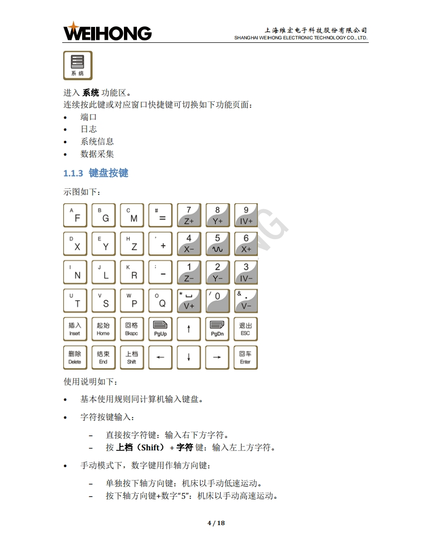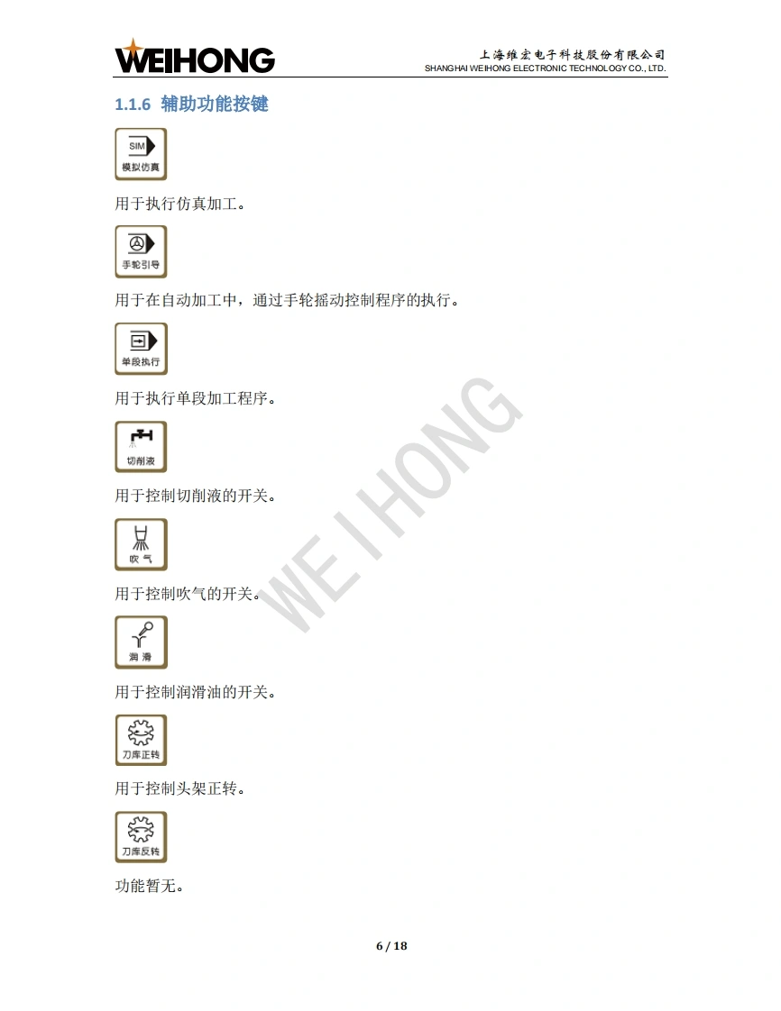 WEIHONG上海维宏电子科技股份有限公司SHANGHAI WEIHONG ELECTRONIC TECHNOLOGY CO.,LTD.NK280B外圆磨床控制系统用户手册版次:2018年11月19日第1版作者:文档部上海维宏电子科技股份有限公司版权所有1NK280B一体机简介1.1操作面板1.1.1显示屏幕.21.1.2主功能菜单按键.31.1.3键盘按键.41.1.4模式按键.51.1.5紧停按键1.1.6辅助功能按键.61.1.7倍率旋钮..71.1.8运动控制按键.71.1.9操作按键81.2背面接口..82快速上手92.1回机械原点.102.2导入系统参数.102.3拷贝加工文件….112.4设置砂轮原点….112.5载入修砂轮程序文件.122.6执行砂轮成型修.12