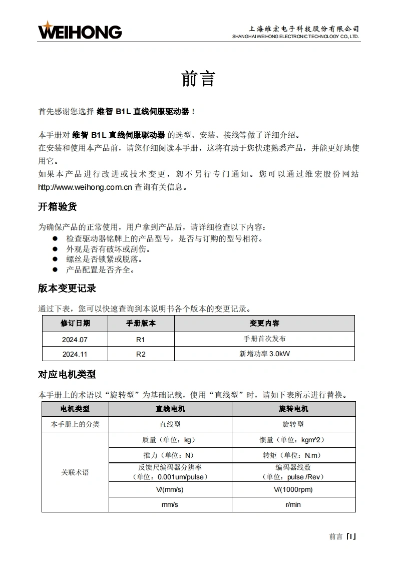 维智WSD-B1L系列直线伺服驱动器用户手册(EtherCAT总线型)-R2找手册网18小时前发布关注私信11.57MB294页027维智WSD-B1L系列直线伺服驱动器用户手册(EtherCAT总线型)-R2此内容为付费资源,请付费后查看¥19¥21黄金会员免费钻石会员免费立即购买您当前未登录!建议登陆后购买,可保存购买订单付费资源 第1页 / 共294页 第2页 / 共294页 第3页 / 共294页 第4页 / 共294页 第5页 / 共294页 第6页 / 共294页 第7页 / 共294页 第8页 / 共294页 第9页 / 共294页 第10页 / 共294页 试读已结束,还剩284页,您可下载完整版后进行离线阅读 THE END维宏 文本预览 WEIHONG维宏服份创业板:300508∥与正维智B1系列直线伺服驱动器用户手册(EtherCAT总线型第2版)B1L殿AA专业·专心·专注 查看更多 收起部分 喜欢就支持一下吧收藏