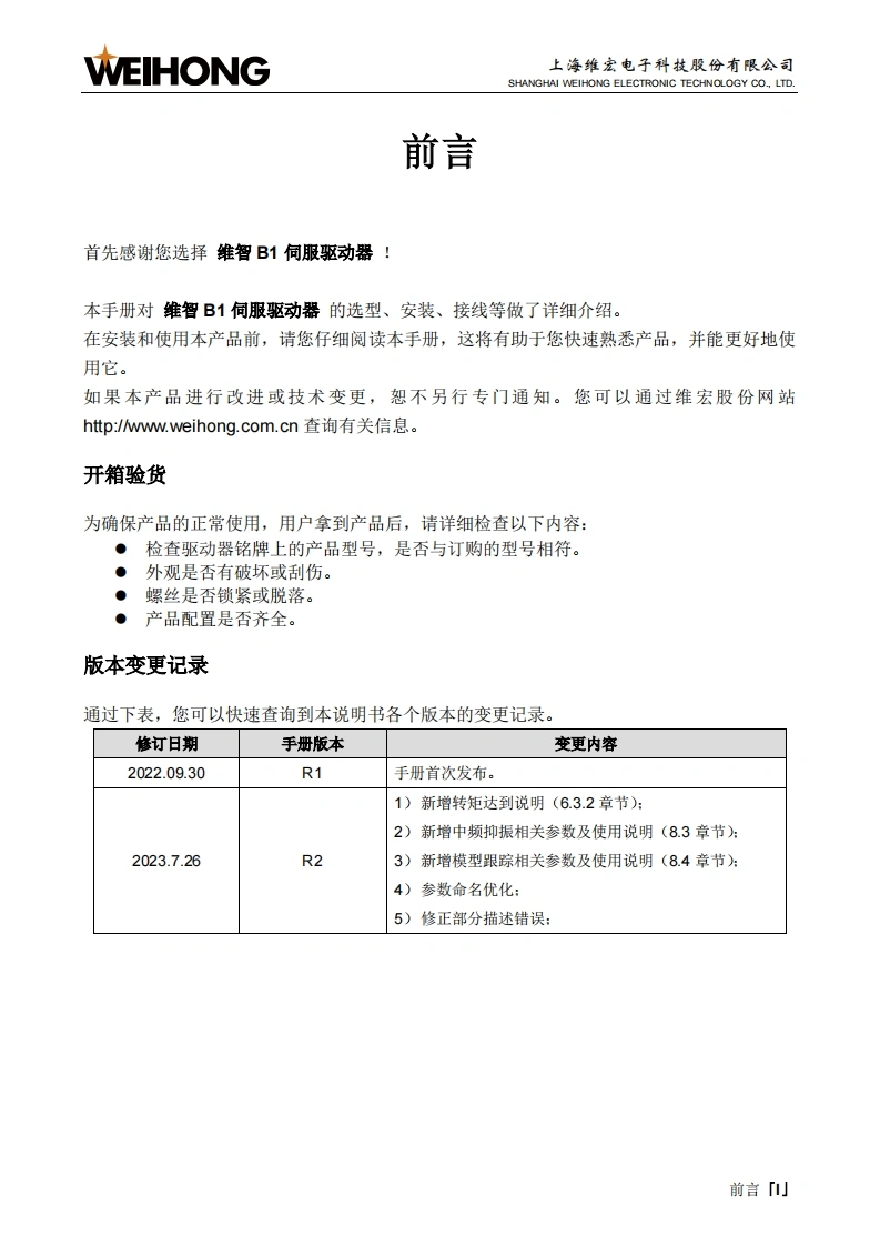 维智WSD-B1系列伺服驱动器用户手册(脉冲型)-R2找手册网18小时前发布关注私信8.06MB207页022维智WSD-B1系列伺服驱动器用户手册(脉冲型)-R2此内容为付费资源,请付费后查看¥19¥21黄金会员免费钻石会员免费立即购买您当前未登录!建议登陆后购买,可保存购买订单付费资源 第1页 / 共207页 第2页 / 共207页 第3页 / 共207页 第4页 / 共207页 第5页 / 共207页 第6页 / 共207页 第7页 / 共207页 第8页 / 共207页 第9页 / 共207页 第10页 / 共207页 试读已结束,还剩197页,您可下载完整版后进行离线阅读 THE END维宏 文本预览 WEIHONG维宏服份创业板:300508与E维智B1系列伺服驱动器用户手册(脉冲型第2版)03品专业·专心·专注 查看更多 收起部分 喜欢就支持一下吧收藏