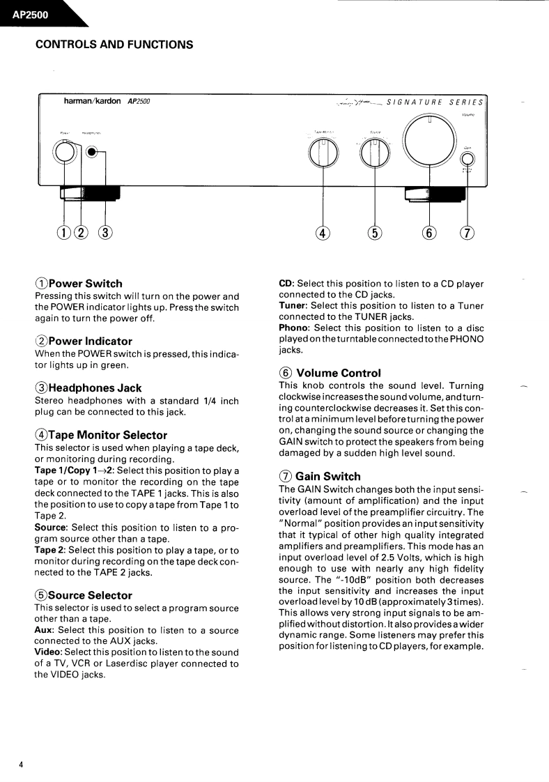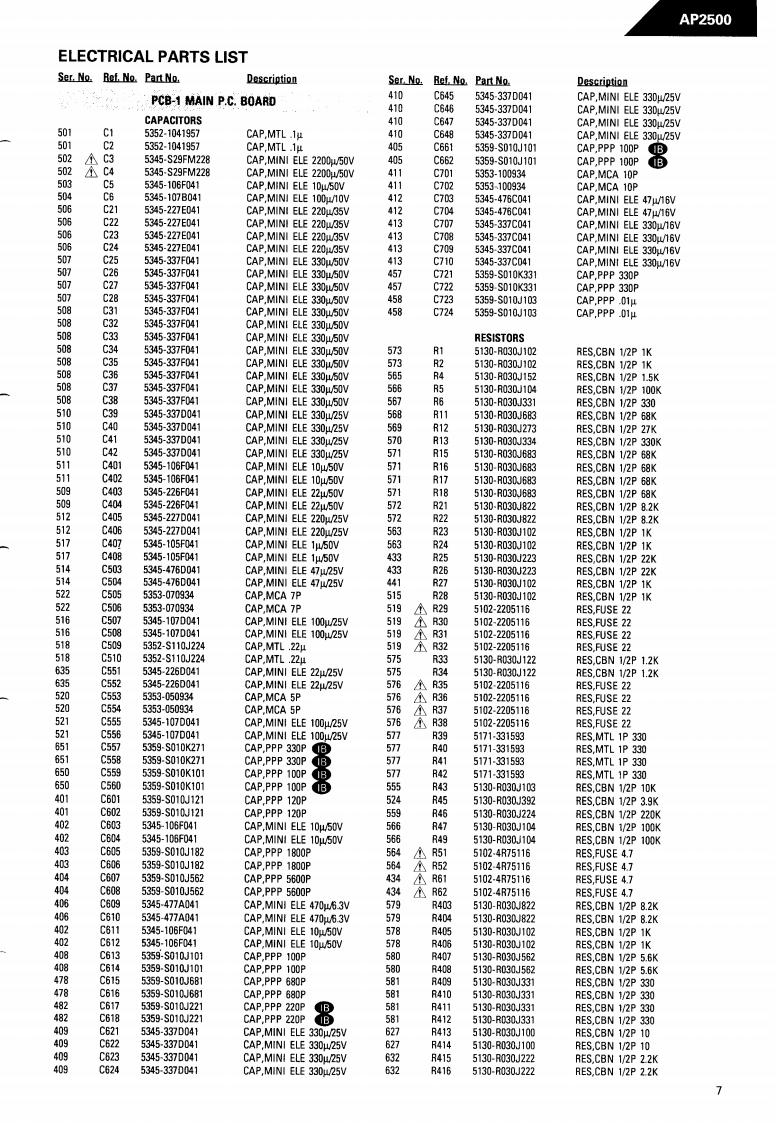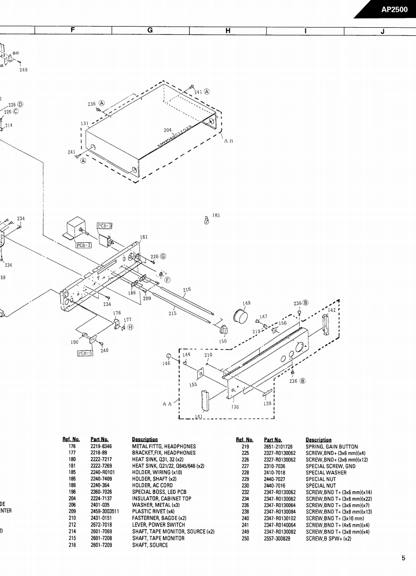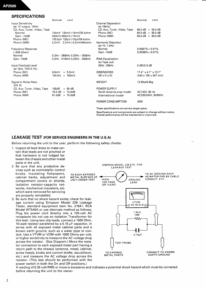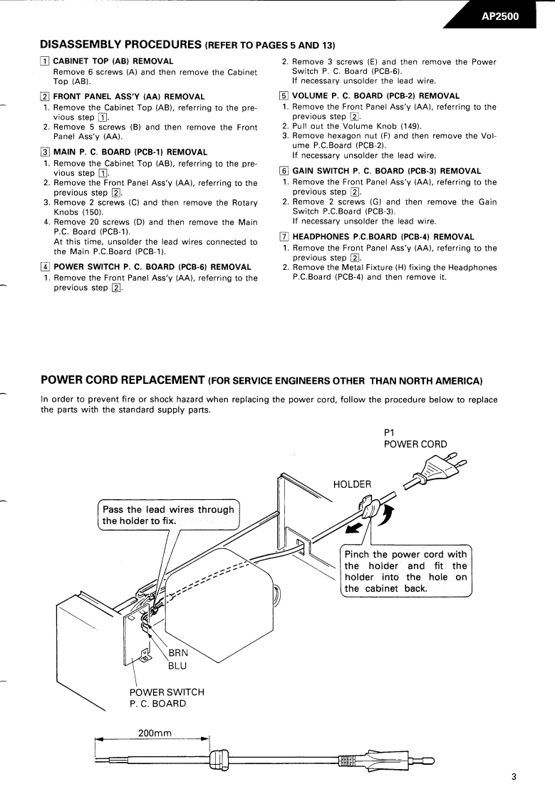 The Harman KardonModel AP2500Manual 189ASTEREO PREAMPLIFIERAP2500Technical Manualharman/kardon AP2500SIGNA TURE S ER I E SThe following marks found in the parts list of this manualidentify the models as follows.B:North America area model Black versionInternational model Black versionCONTENTSSPECIFICATIONS.2GENERAL UNIT AND PARTS LIST.............5.LEAKAGE TEST.......2P.C.DISASSEMBLY PROCEDURES............3ELECTRICAL PARTS LIST.......7POWER CORD REPLACEMENT .........3SCHEMATIC DIAGRAMS....................11CONTROLS AND FUNCTIONS..............4WIRING DIAGRAM...............................13harman/kardonParts and Service Office240 Crossways Park West,Woodbury,N.Y.117971112-0500A152 K9308-1 1500 Printed in Japan