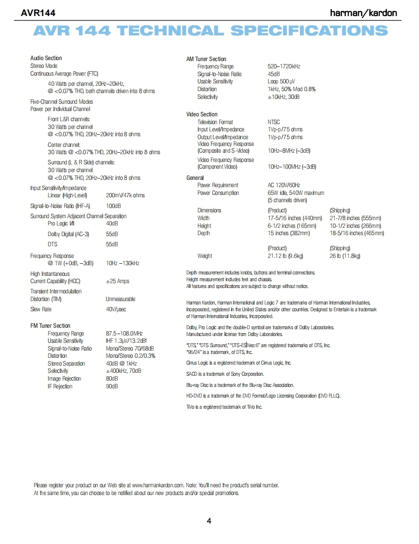 harman/kardonAVR1445 X 30W 5.1 CHANNEL AV RECEIVERSERVICE MANUALANR图监临D0/ANAL0Gm吕四L0GIC75CHCI口o日harman/kardon⊙⊙OL+-CONTENTSESD WARNING......2DISASSEMBLY.............28LEAKAGE TESTING..........3UNIT EXPLODED VIEW........................31BASIC SPECIFICATIONS................4EXPLODED VIEW PARTS LIST...............32PACKAGING.5AMP BIAS ADJUSTMENT...................33FRONT PANEL CONTROLS........6BLOCK DIAGRAM.34REAR PANEL CONNECTIONS..........8PCB DRAWINGS..............35REMOTE CONTROL FUNCTIONS..........10ELECTRICAL PARTS LIST......42CONNECTIONS/INSTALLATION............13SEMICONDUCTOR PINOUTS...............69OPERATION..22SCHEMATICS............151TROUBLESHOOTING GUIDE................27WIRING DIAGRAM........................158REMOTE PROCESSOR RESETS..........27haman/kardon,Inc.250 Crossways Park Dr.Woodbury,New York 11797Rev022007