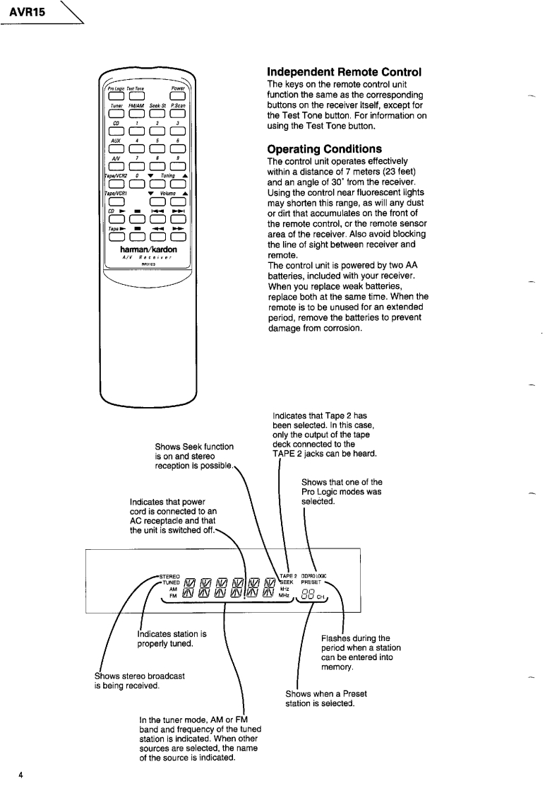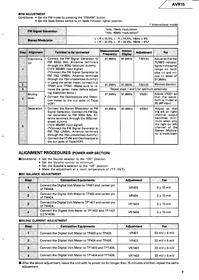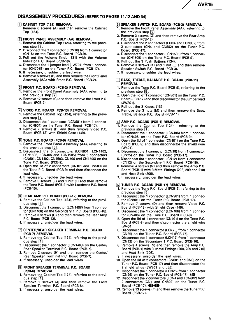 The Harman KardonModel AVR15Manual 195AAUDIO/VIDEO RECEIVERTechnical Manualharman/kardon AVRI5....The following marks found in the parts list of this manualidentify the models as follows.North America area model Black versionInternational model Black versionInternational modelCONTENTSSPECIFICATIONS...........2GENERAL UNIT PARTS LIST ......10LEAKAGE TEST....2GENERAL UNIT EXPLODED VIEW............11CONTROLS AND FUNCTIONS....................3P.C.BOARDS.........12DISASSEMBLY PROCEDURES.......5ELECTRICAL PARTS LIST............16CIRCUIT DESCRIPTION.............6IC BLOCK DIAGRAM......................24BLOCK DIAGRAM…7SCHEMATIC DIAGRAMS............27TIMING CHART.........8WIRING DIAGRAM..............................34ALIGNMENT PROCEDURES.8harman/kardonParts and Service Office80 Crossways Park West,Woodbury,N.Y.117971112-0610A152 G9405 1500 Printed in Japan