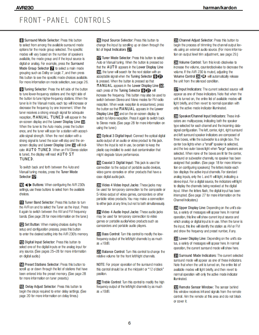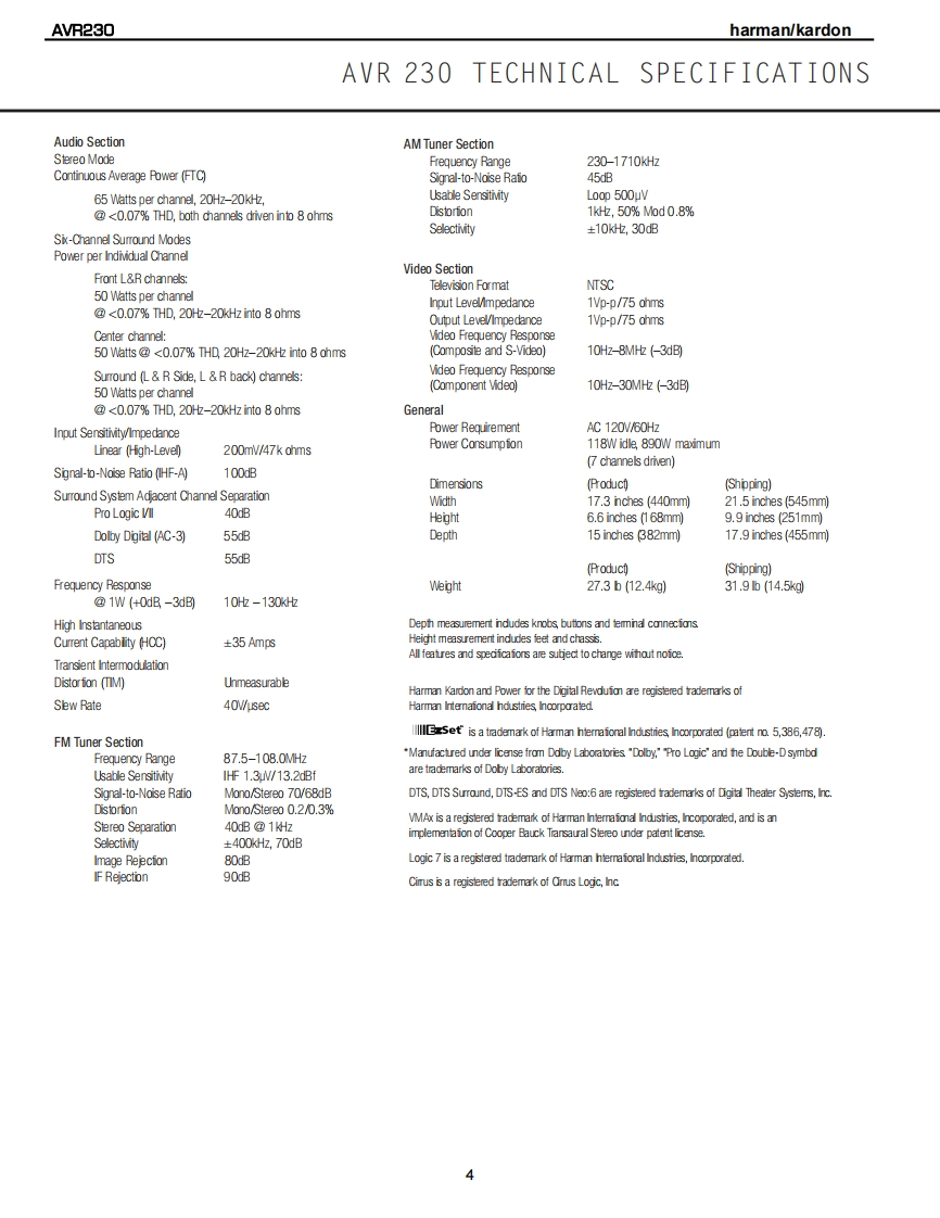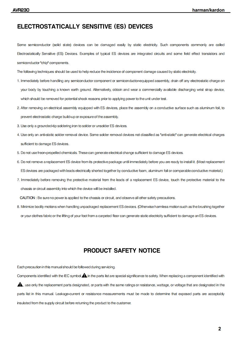 harman/kardonAVR2306 X 50W 5.1/7.1 CHANNEL A/RECEIVERSERVICE MANUALR20DVD /COAX 1同DOLBY D EXa同⊙6⊙gaharman/kardon⊙⊙CONTENTSESD WARNING..2TECH TIP HKTT2003-01..21LEAKAGE TESTING心UNIT EXPLODED VIEW................22BASIC SPECIFICATIONS..…4BLOCK DIAGRAM...…23FRONT PANEL CONTROLS................5AMP BIAS ADJUSTMENT......................24REAR PANEL CONNECTIONS.7PCB DRAWINGS.................25REMOTE CONTROL FUNCTIONS..........10ELECTRICAL PARTS LIST...................31TROUBLESHOOTING GUIDE..............13SEMICONDUCTOR PINOUTS............67PROCESSOR RESET...........13SCHEMATICS..108DISASSEMBLY14WIRING DIAGRAM........124BULLETIN HK2003-10........................15PACKAGING................125TECH TIP HKTT2004-03...........17harman/kardon,Inc.250 Crossways Park Dr.Woodbury,New York 11797Rev17/2005