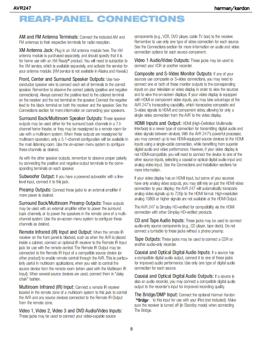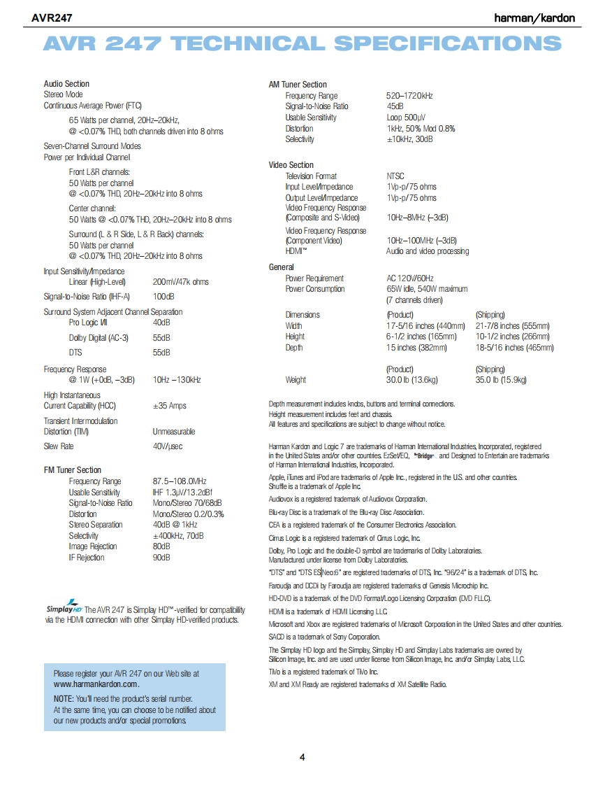 harman/kardonAVR2477X 50W 7.1 CHANNEL AN RECEIVERSERVICE MANUALAR圈·微?①U0C0AX1四吕四L0GIC77CHMU8°866066harman/kardon⊙⊙⊙CONTENTSESD WARNING........2DISASSEMBLY......36LEAKAGE TESTING.3UNIT EXPLODED VIEW............BASIC SPECIFICATIONS..................4EXPLODED VIEW PARTS LIST...............42PACKAGING.5AMP BIAS ADJUSTMENT.................43FRONT PANEL CONTROLS..BLOCK DIAGRAM.44REAR PANEL CONNECTIONS.........8PCB DRAWINGS...........45REMOTE CONTROL FUNCTIONS..........11ELECTRICAL PARTS LIST...................54CONNECTIONS/INSTALLATION.............14SEMICONDUCTOR PINOUTS...............95OPERATION.26SCHEMATICS.......196TROUBLESHOOTING GUIDE.................34WIRING DIAGRAM.........................206REMOTE PROCESSOR RESETS..........35haman/kardon,Inc.250 Crossways Park Dr.Released 2007Woodbury,New York 11797Rev06/2007Discontinued XXXX